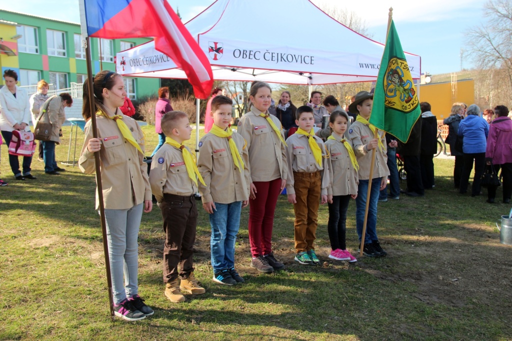Členové našeho oddílu se zapojili i do slavnosti výsadby památeční lípy u naší základní školy. Při této slavnosti dohlížela na sázení lípy čestná stráž, složená z našich skautů. Lípu pak slavnostně zasadil pan starosta s panem hejtmanem.