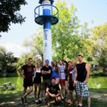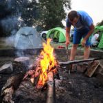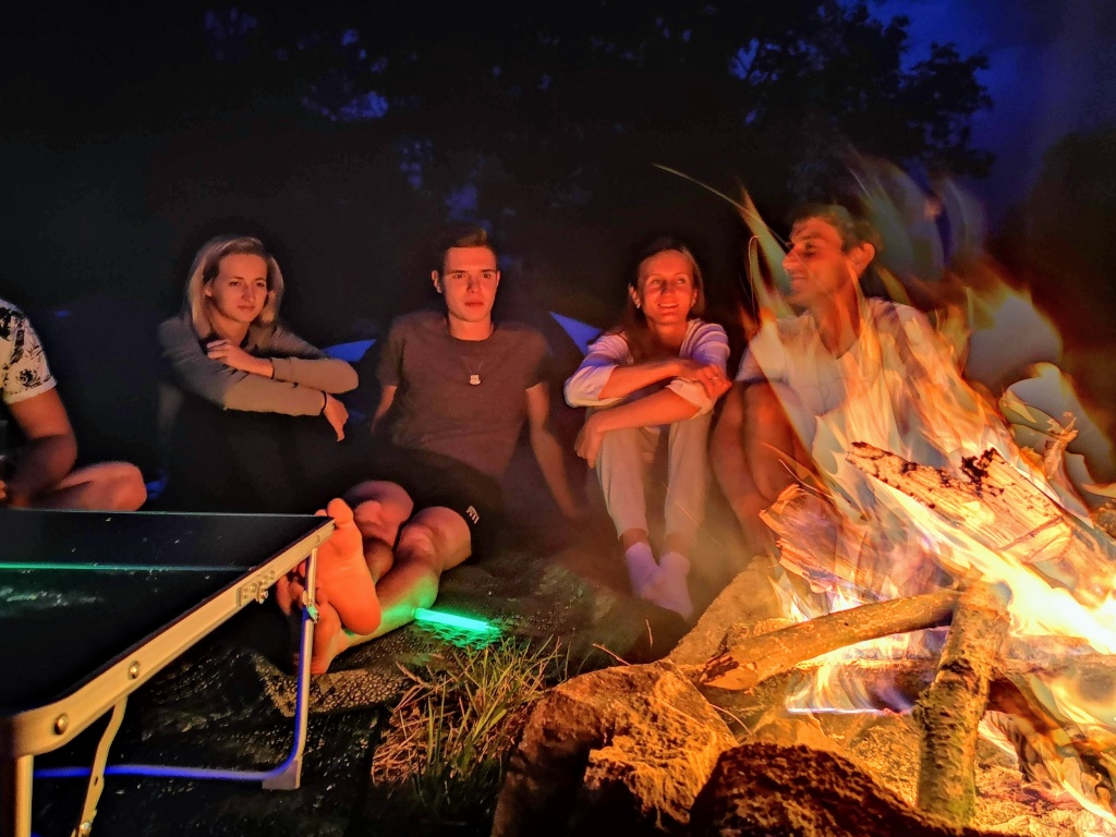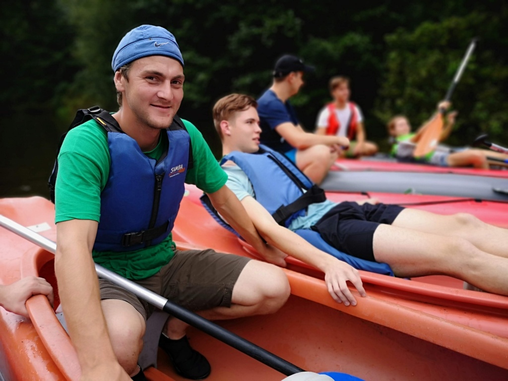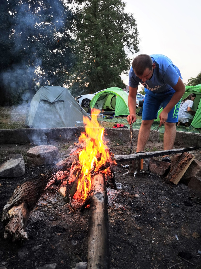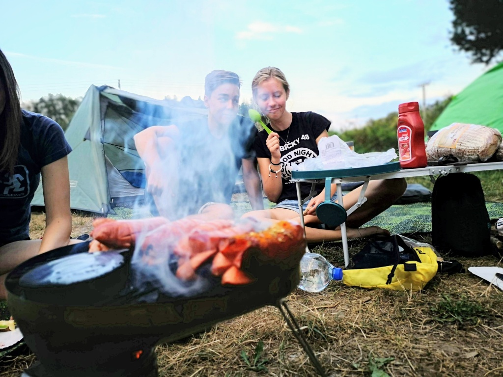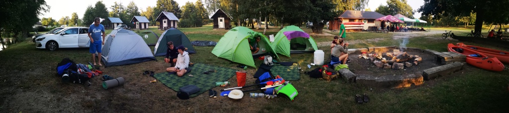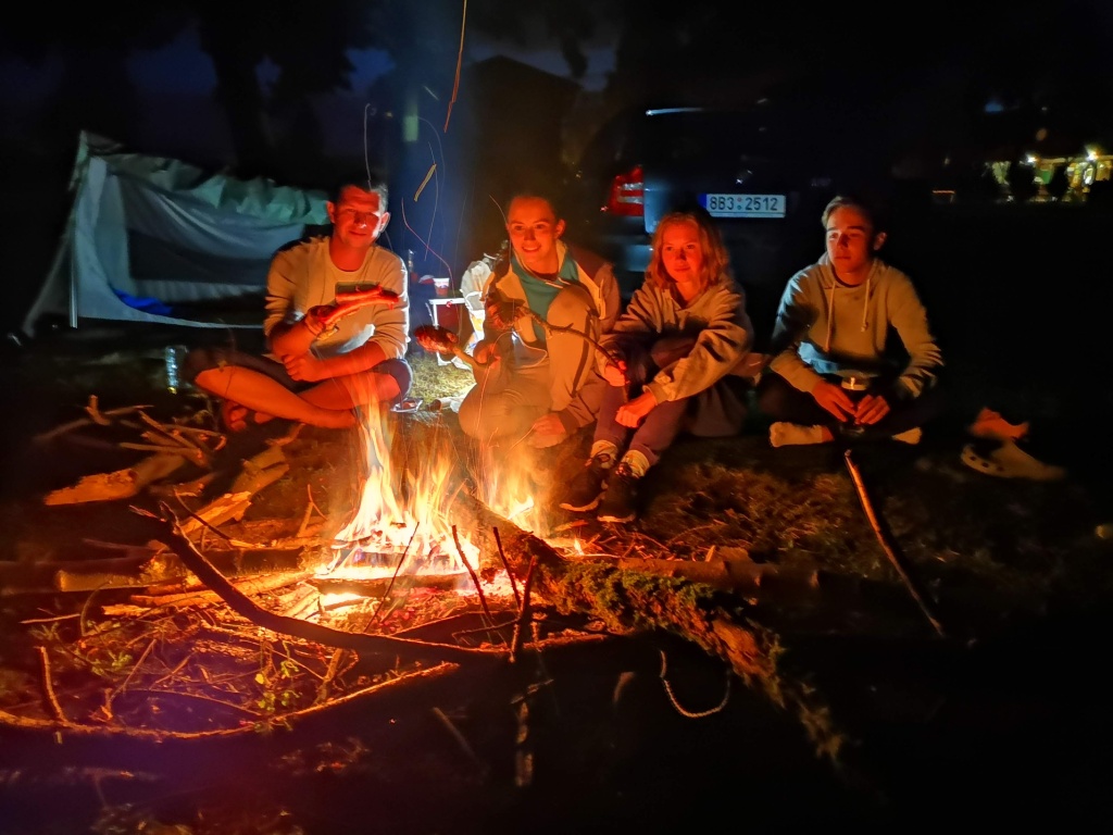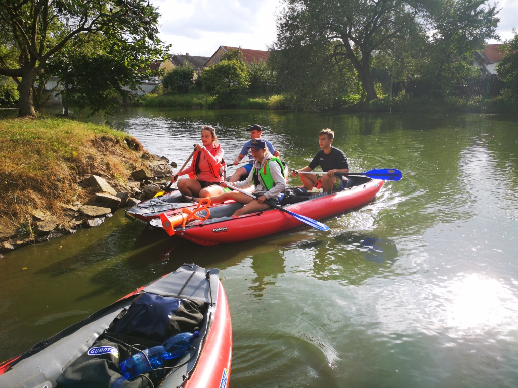 Ve středu jsme přesunuli přibližovadla do městyse Lužnice. Slečna na recepci kempu nás sice varovala, že přes nízkou hladinu vody se již 14 dnů do kempu žádný vodák nedostal. Byla to skutečná výzva… No a my jsme ji splnili jenom s malým svezením autem a objetím nejhoršího úseku. Nevzdali jsme to a odměnou byla dobrodružná plavba přes Rožmberk. Velký rybník, který byl nemalou výzvou. Slečně jsme dokázali, že my skauti nejsme žádné padavky a pevně věříme, že se o nás v tom kempu dodnes tradují legendy. Večer jsme pro změnu grilovali makrely a i přes první spálené kusy jsme přišli jak na to.
