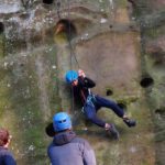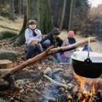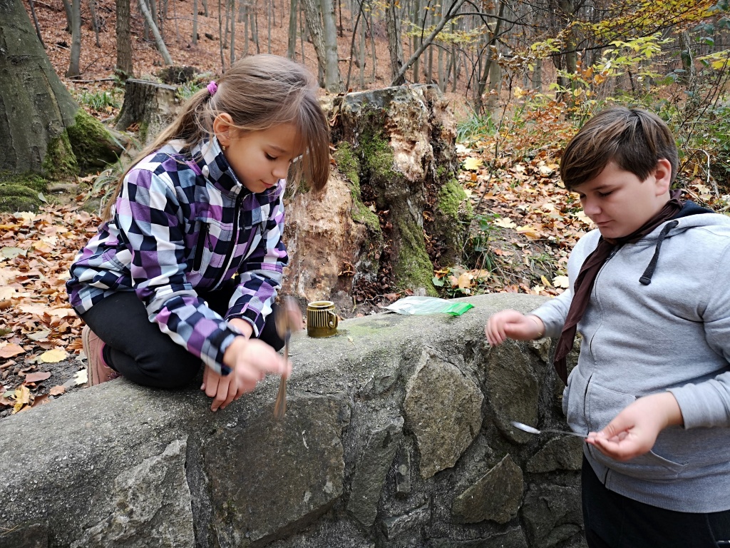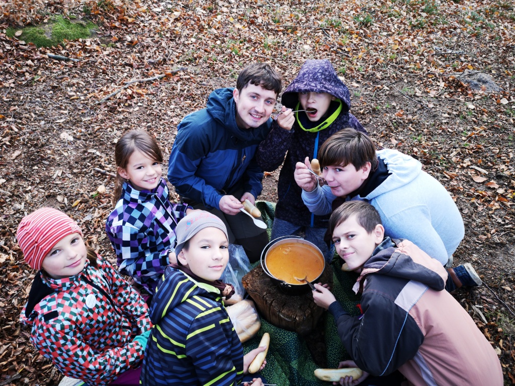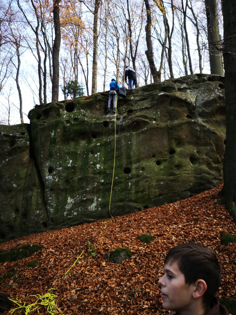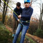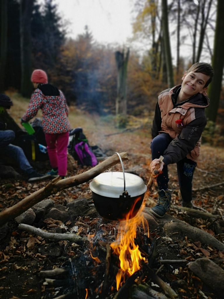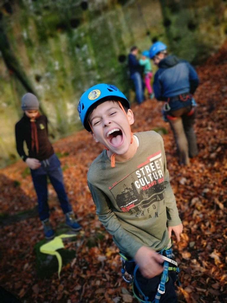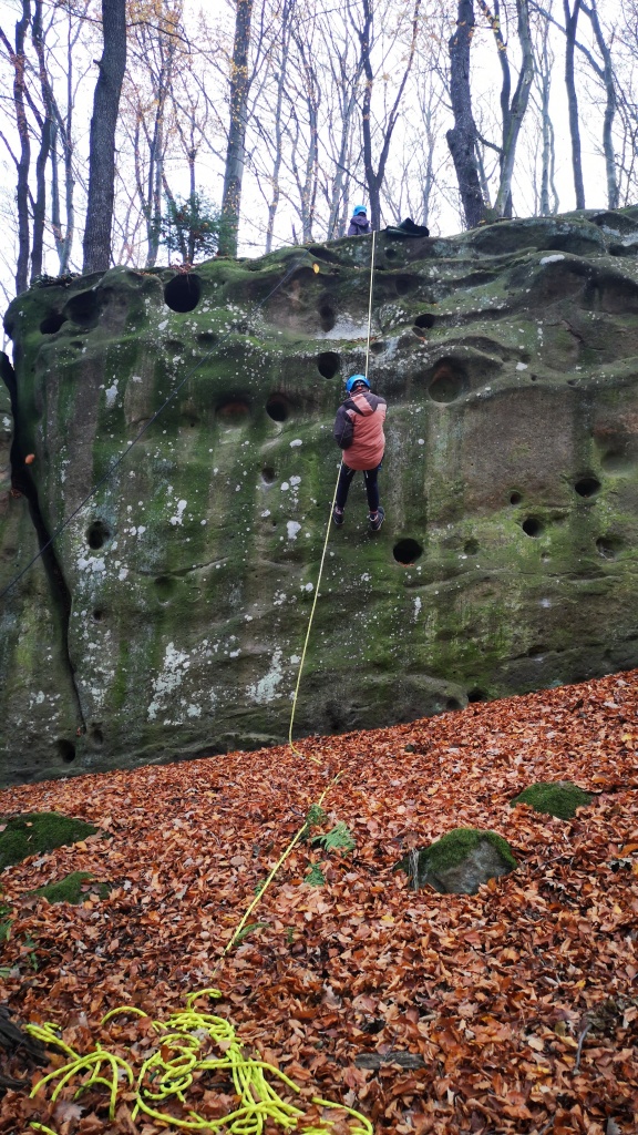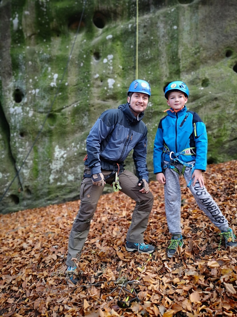 Samozřejmě každý byl při slaňování vybaven bezpečnostními prvky a jištěn. To znamená že se sice spouštěl po „svém“ laně, nicméně byl navázán na dalším, které povoloval jistič dole. Pokud by se stala nějaká nehoda jistič dole by „slaňovače“ bezpečně zachytil. Během pěkného podzimního dne jsme si stihli uvařit perfektní guláš a zahrát i napínavou bojovku. Domů jsme přijeli téměř za tmy unavení, ale plní zážitků z adrenalinového dne.