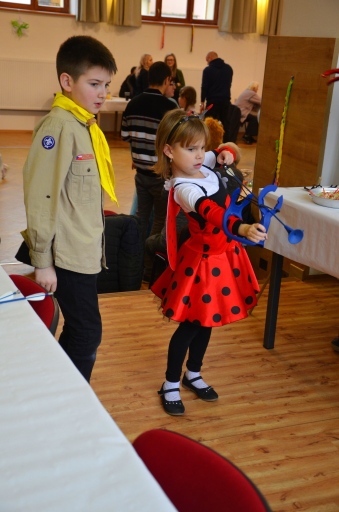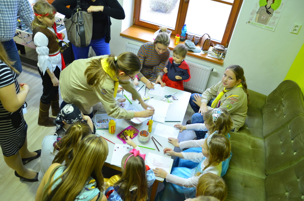Poslední únorovou neděli se uskutečnil už čtvrtý ročník skautského karnevalu. Na tento den se všichni pečlivě připravili – my jsme chystali program, hry a karnevalovou výzdobu, děti si zase sháněly a vyráběly kostýmy. Program začal ve tři hodiny odpoledne přehlídkou masek a společnou hrou. Děti pak měly možnost navštívit sedm stanovišť. Na jednom je čekalo UV bludiště, na druhém střílení z dětského luku, jinde si zas mohly vytvořit hezký obrázek. Po malé přestávce následovala další společná aktivita, malá diskotéka a losování tomboly. Děkujeme všem sponzorům, kteří přispěli do Naší tomboly. Na závěr byl přichystán fire dance od skautky z Vracova. Letošní karneval hodnotíme jako obzvlášť povedený a už se těšíme na další rok!