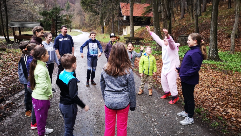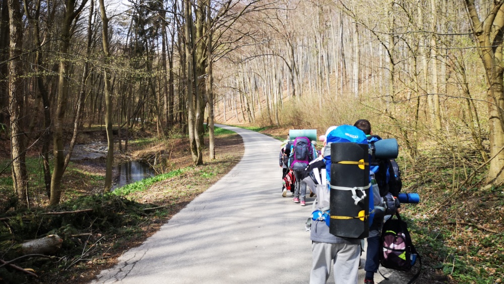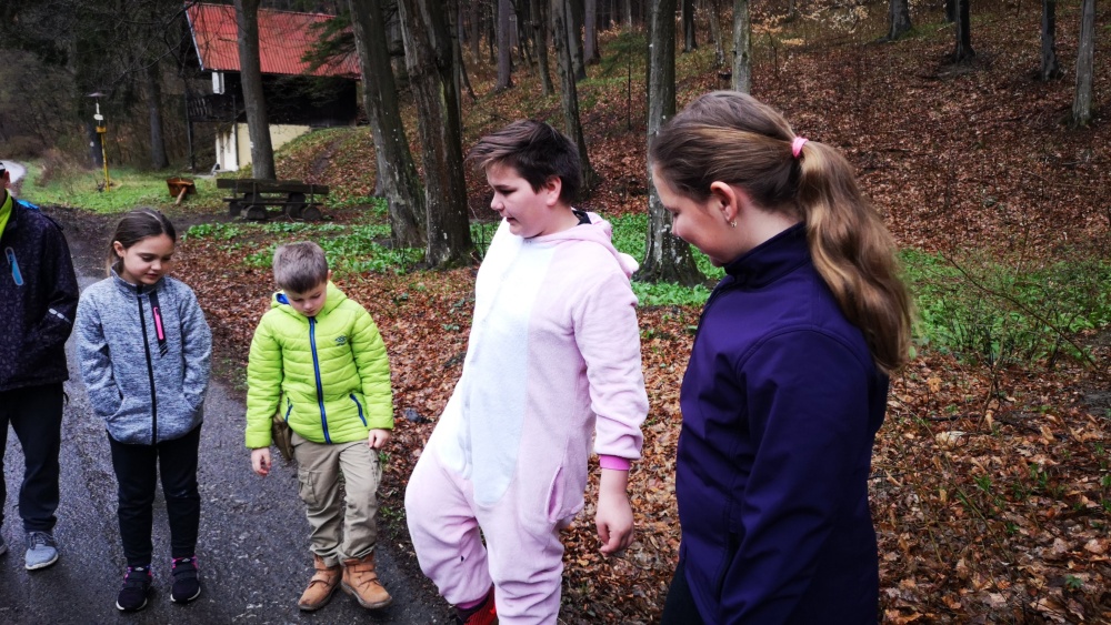 Z Javorníku jsme vyrazili na pochod dobrých 5,5km malebnou cestou kolem Hrubého potoka, které se jmenuje Filipovské údolí. Cestu jsme si krátili hraním her. Cestou jsme narazili i na krásného mloka skvrnitého, která se nám připletl pod nohy. S ústupem „známek civilizace“ a padajícím šerem jsme se blížili našemu cíli – chatě Kristýně. V údolí padá tma rychle a tak nás z dálky vítalo teplé světlo vyzařující z okna klubovny.