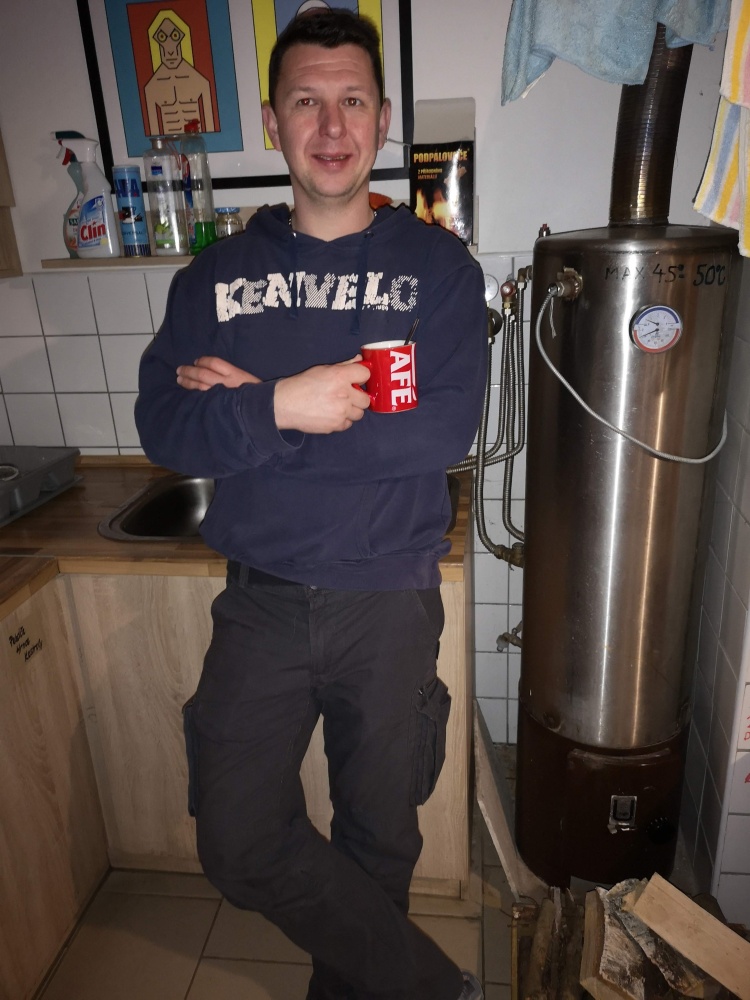Na chatě už se topilo, protože zde na nás čekali už kamarádi Tom a Karča.