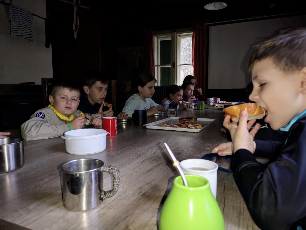 V pátek 5. dubna v 16:15 se naši skauti napříč družinami sešli na vlakovém nádraží v Čejči, kde jsme zahájili výpravu do Bílých Karpat na chatu Kristýnu.