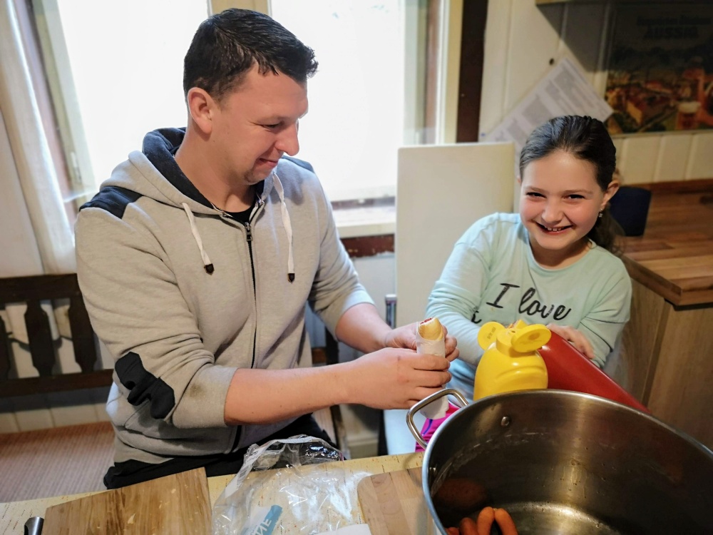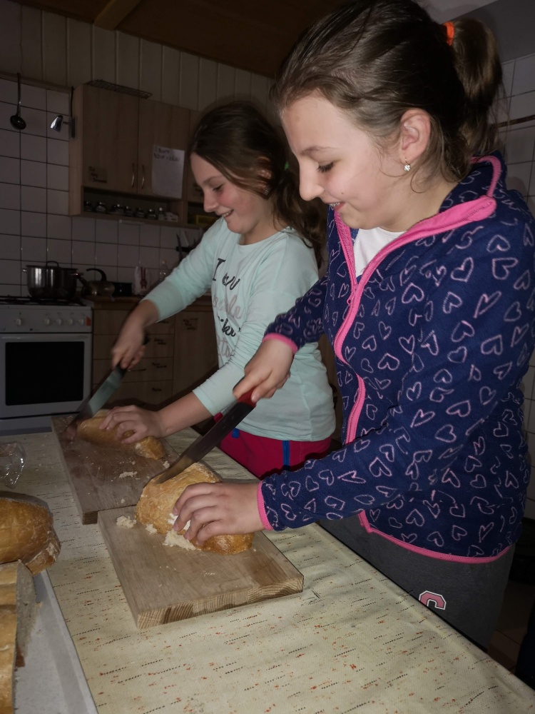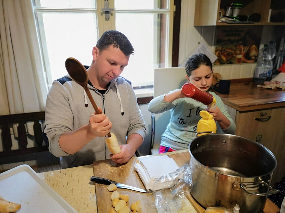 Tady jsme se, ostatně jako předchozí den, rozdělili na skupiny a plnili různé úkoly. Od přípravy večeře, úklid, až po soutěž při které jsme se hodně pobavili.