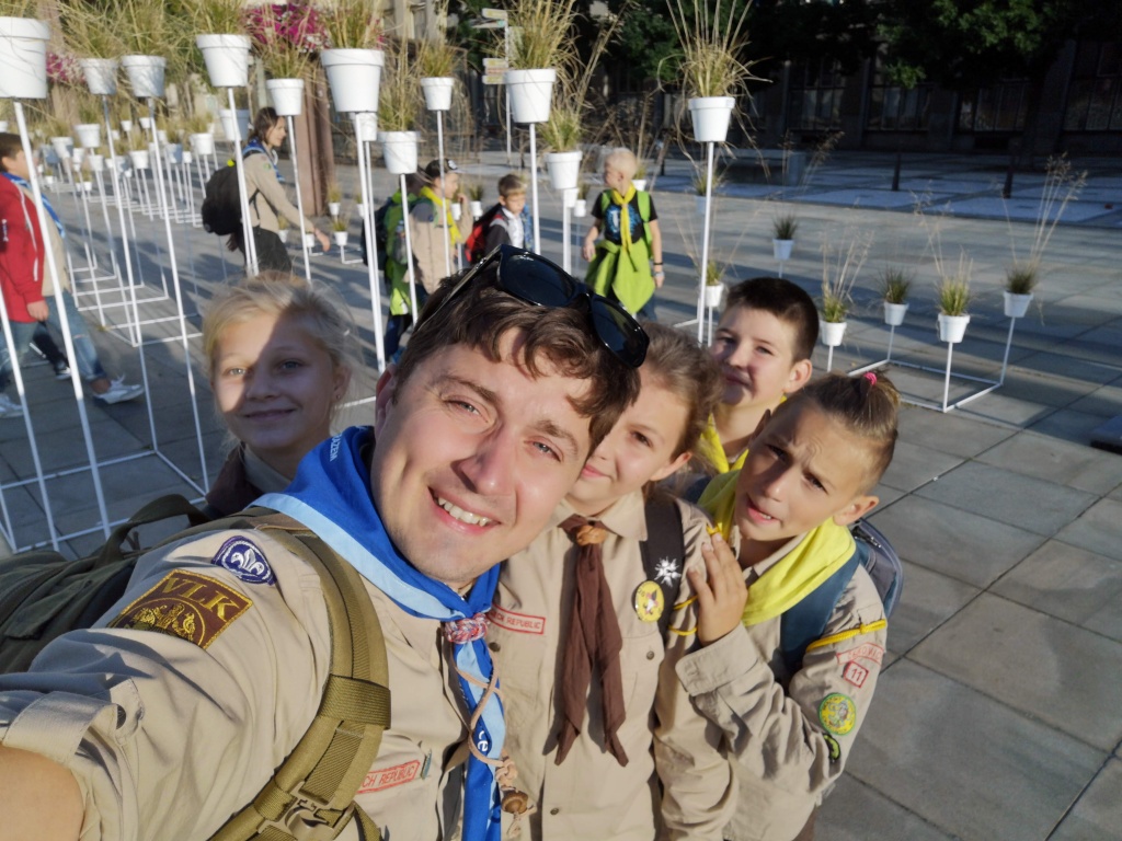 Ráno jsme vyjížděli už po sedmé hodině z Břeclavi. Takže budíček byl opravdu brzy. Z Břeclavi jsme se tzv. spodní cestou vydali do Prahy a tam přesedli na vlak do Ostravy. Tam jsme letos chtěli zavítat do centra a prohlédnout si to tam. Před radnicí se nám velice líbila originální květinová výzdoba. No a z radniční věže to byl výhled panečku. Před zpáteční cestou jsme si nezapomněli nakoupit zásoby jídla do vlaku a vydali jsme se na cestu domů.