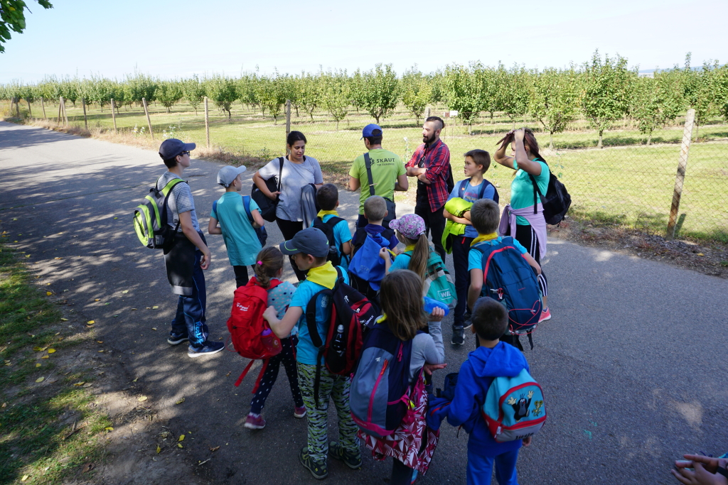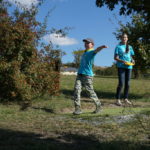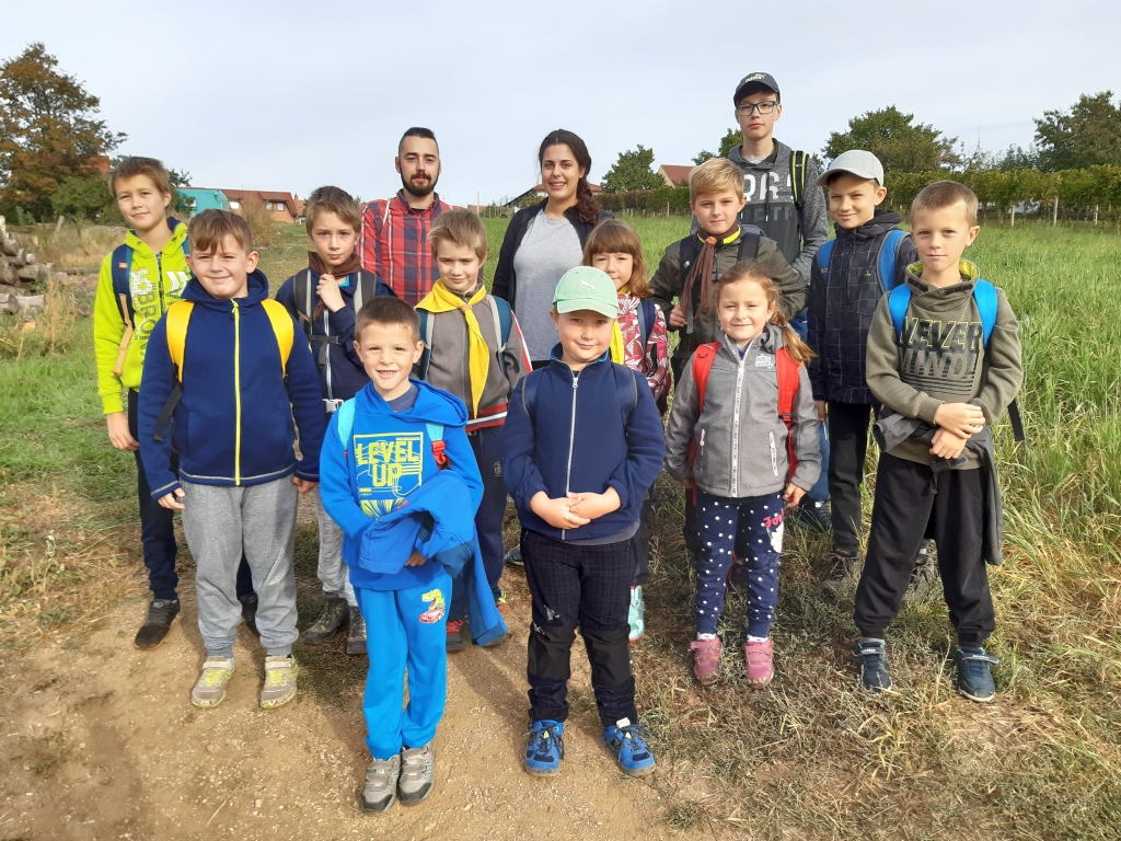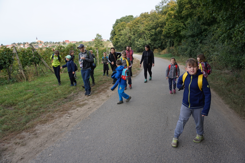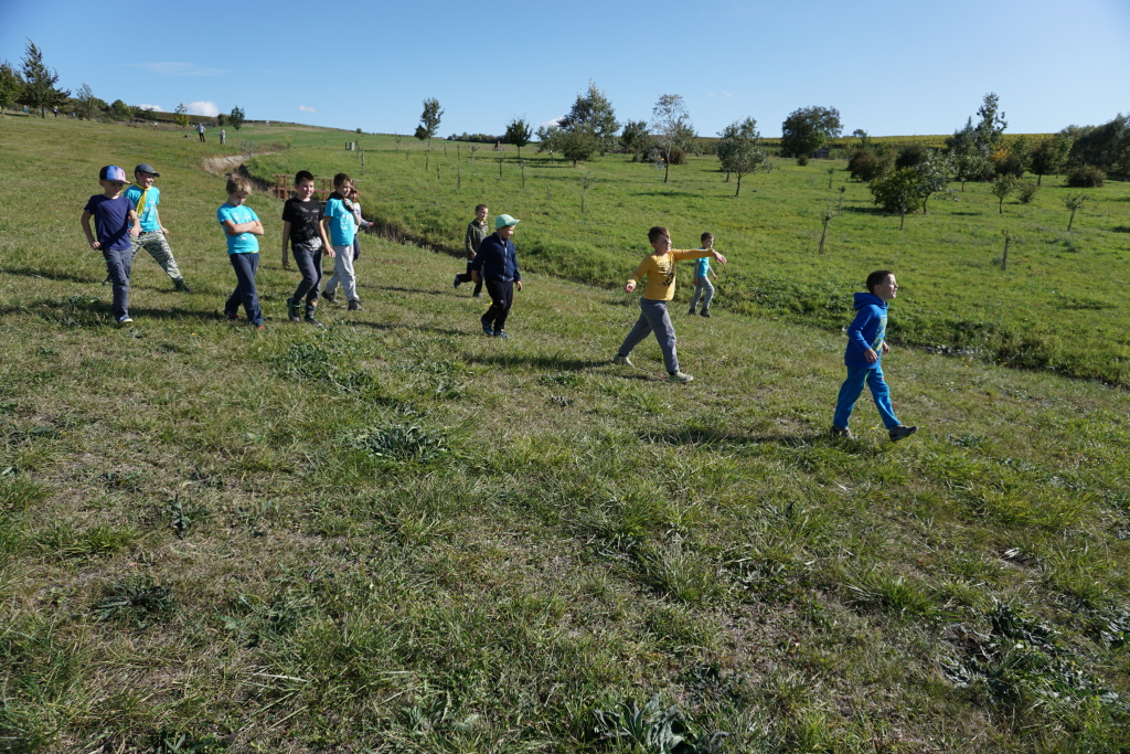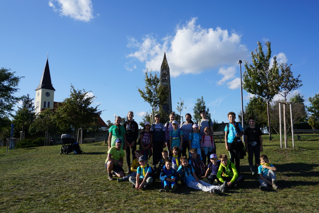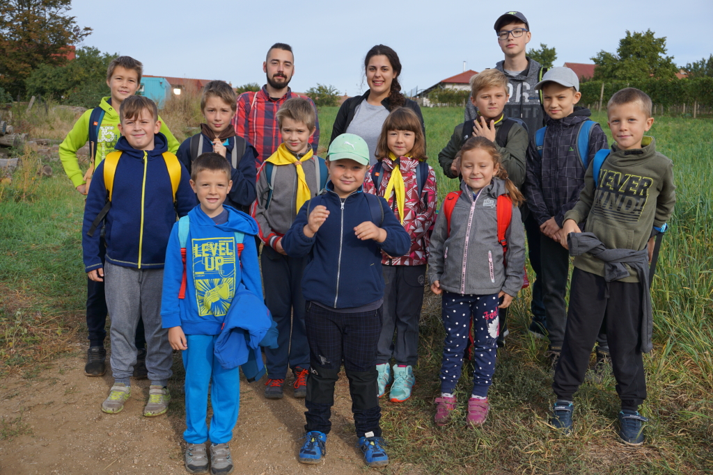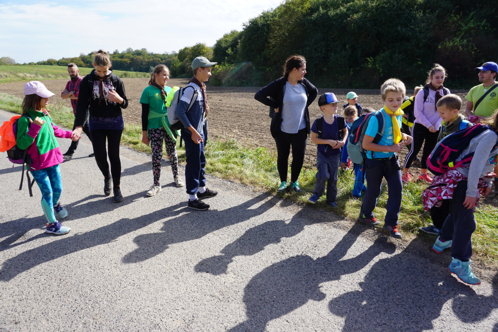 Druhá letošní výprava proběhla v režii vrbeckých skautů v neděli 29.9. V 9:00 jsme se sešli na kraji Vrbice a vyrazili směr Čejkovice. Cestou jsme si zahráli hry Klíště a Kolemjdoucí. Klíště – kolíčky s určitým úkolem a děti si je během cesty tajně předávají. Náhodně se během cesty zastavuje a zjišťuje, kdo má zrovna klíště, ten poté plní zadaný úkol, např. zazpívat písničku. Při hře Kolemjdoucí si vybraní hráči musí zapamatovat, co měl kolemjdoucí za oblečení, popsat ho, vymyslet mu jméno, tipnout si odkud a kam jde. Tyto hry nám zabraly více času, než jsme očekávali, a tak jsme se na kraj Čejkovic dostali až po desáté hodině. Tam jsme se sešli s čejkovskými skauty a vydali se do Kobylí na discgolf. Šli jsme kousek po hlavní směr Čejč, ale stálo to za to, děti byly vzorné a následná cesta mezi sady je moc pěkná.