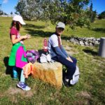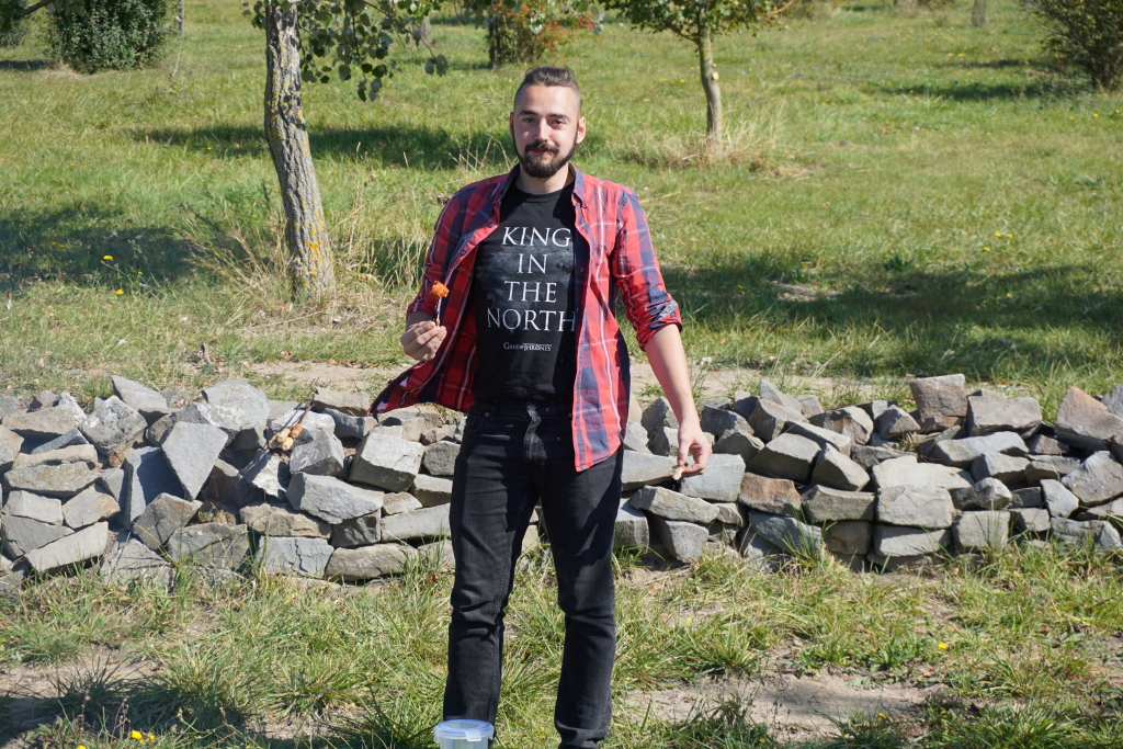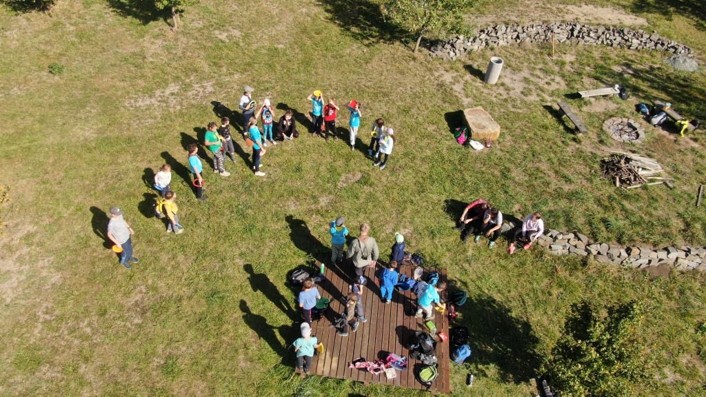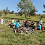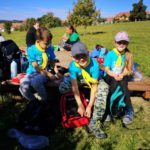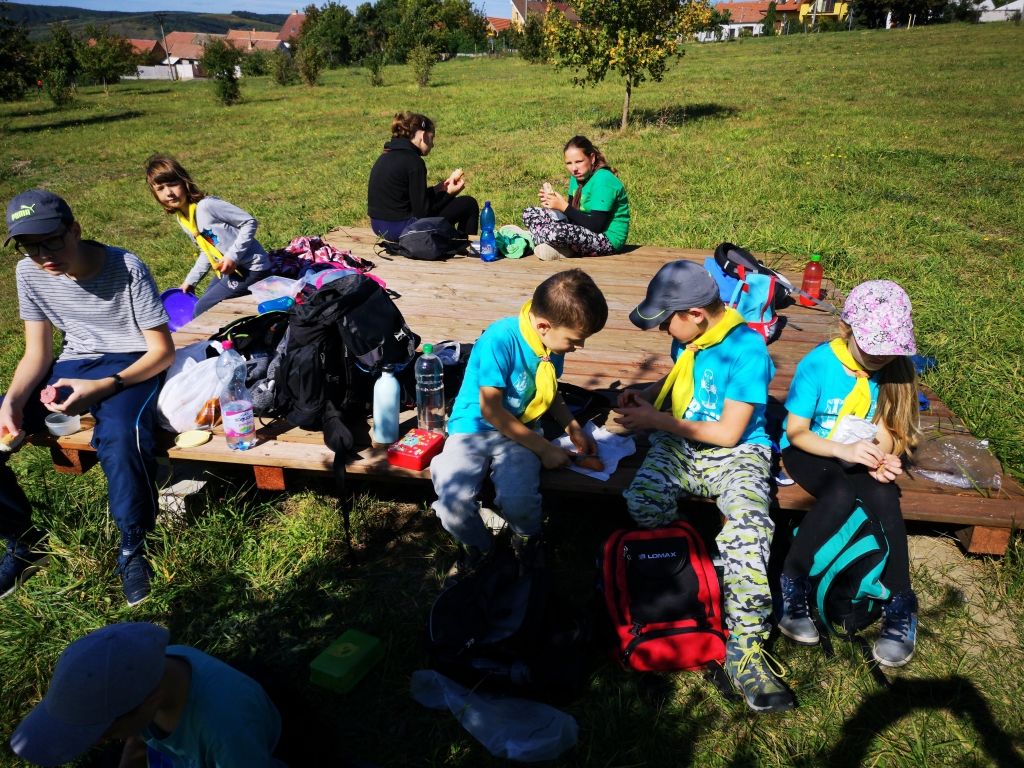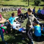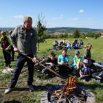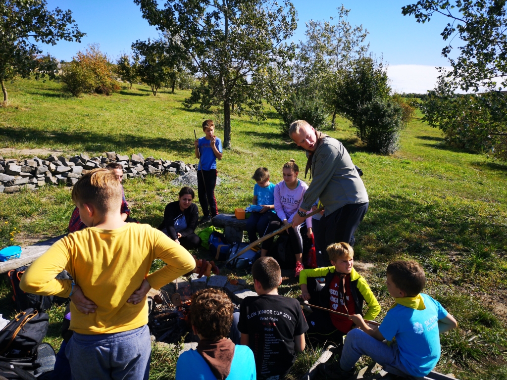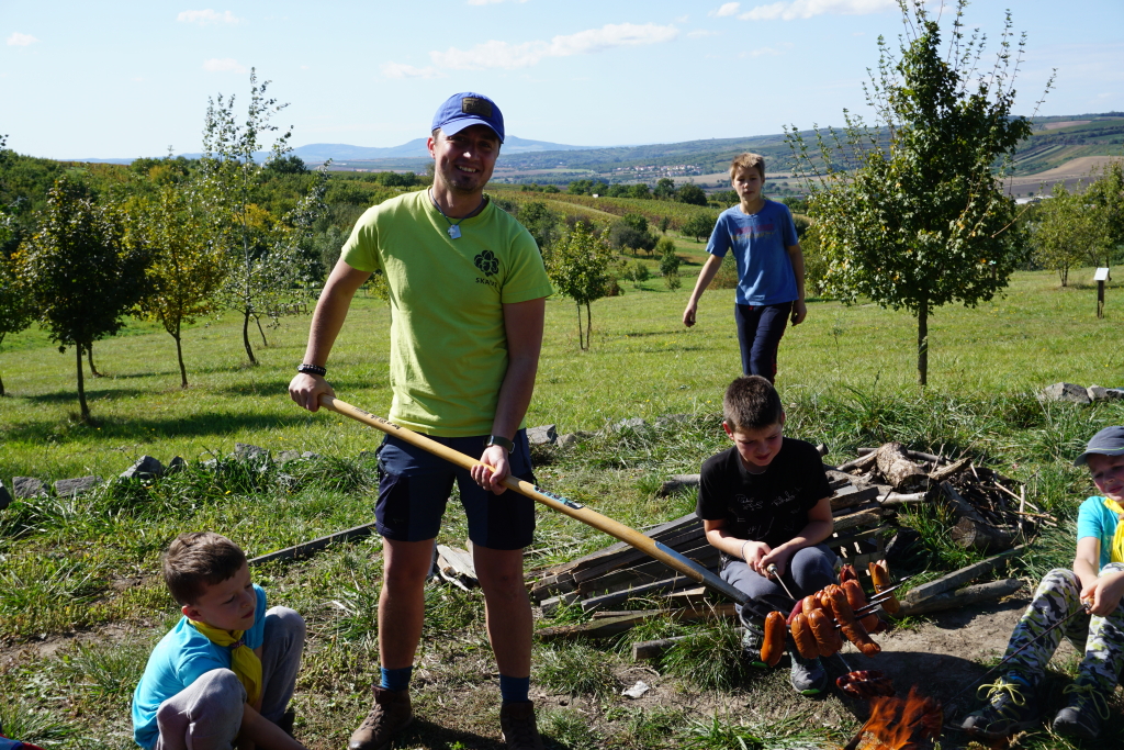 Při svačině se k nám připojily i děti, které se nemohly účastnit od začátku, jelikož byly v kostele. Po svačině jsme hráli hru Blázinec, kdy jeden v roli doktora ostatním podává otázky a hádá jakou mají diagnózu. Kolem jedné jsme dorazili na místo, kde jsme rozdělali oheň a opekli si špekáčky.