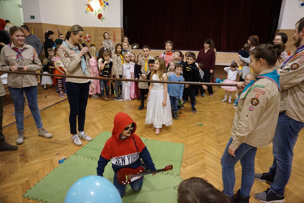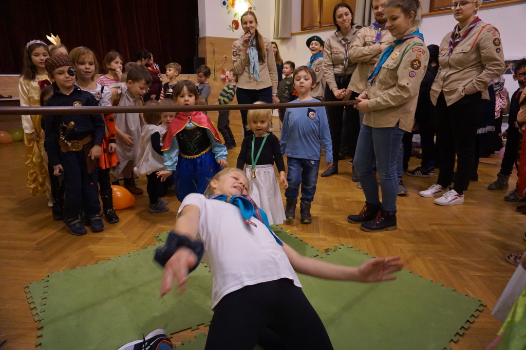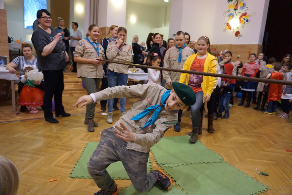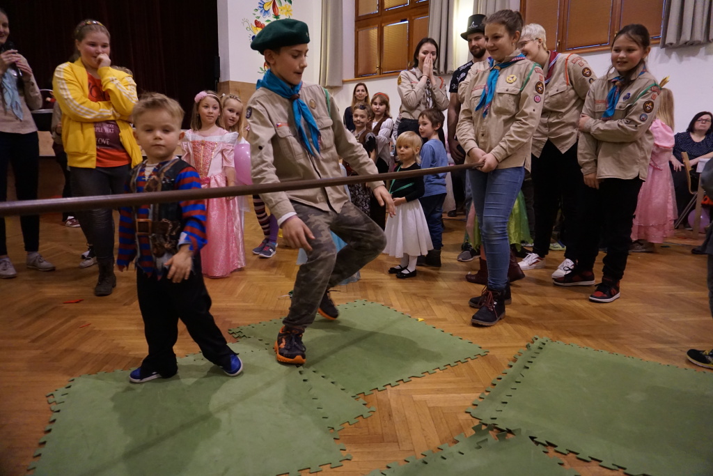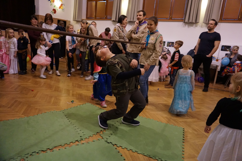 V neděli 23. února proběhl již 5. skautský karneval. Moc nás potěšilo, že letos přišlo zase více dětí než minulý rok a že je o náš karneval každoročně větší zájem. Děti se nejprve předvedly ve svých maskách, které si nachystaly a pak na ně čekal bohatý program. Program jsme připravili tak, aby si ho užily malé i větší děti. Celé odpoledne bylo rozděleno do společného programu v sále a poté individuálního programu na stanovištích, kde si děti mohly vyzkoušet střílení z luku, zručnost při přetahování a vyrobily si na památku ptáčka z vlny. Největší radost měly z prolézání našeho originálního UV bludiště. Konec karnevalu byl ukončen losováním tomboly o zajímavé ceny. A také netradiční zábavnou hrou limbo. Ve které děti do rytmu podlézali stále se snižující tyč.