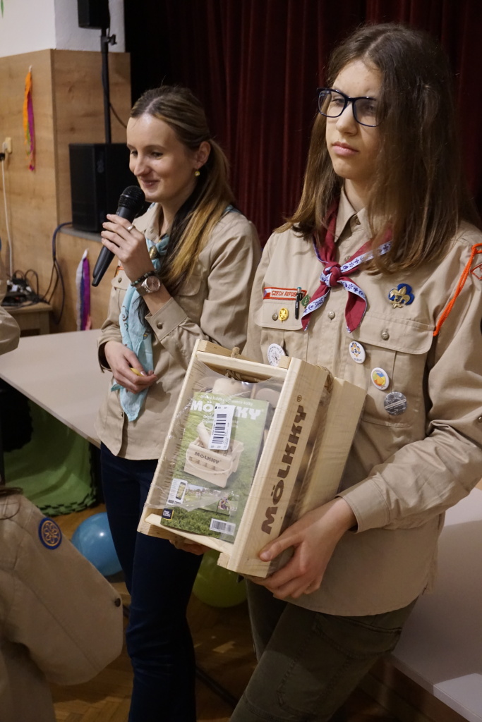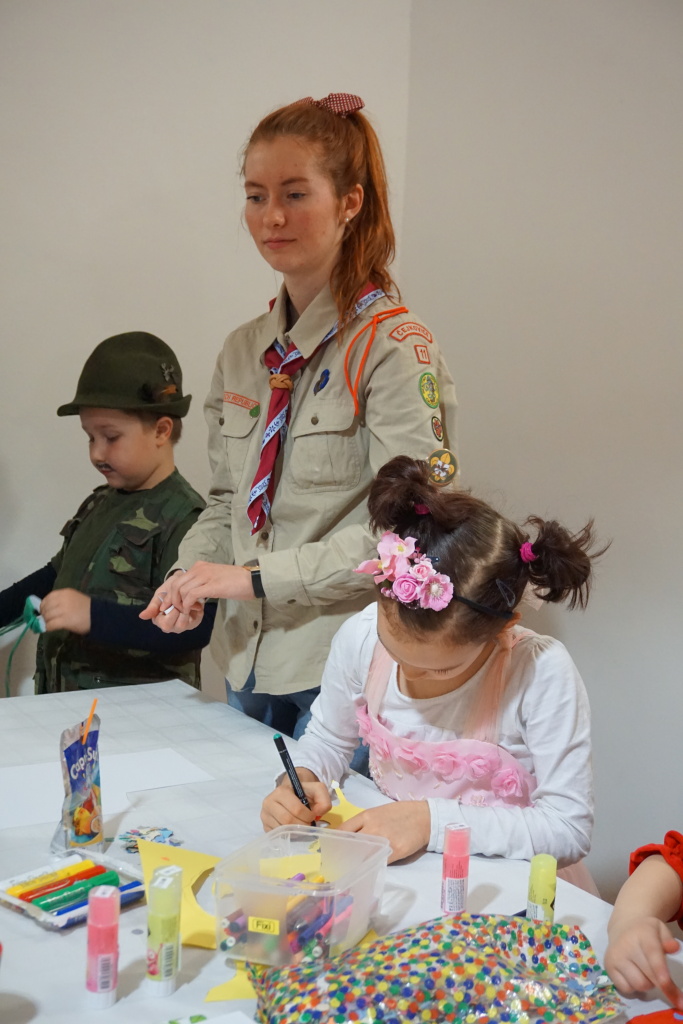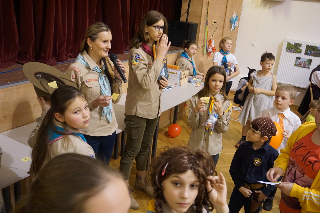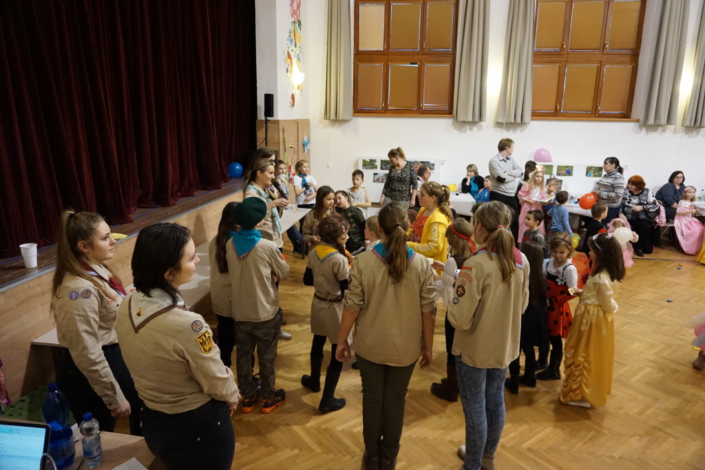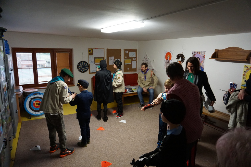 V neděli 23. února proběhl již 5. skautský karneval. Moc nás potěšilo, že letos přišlo zase více dětí než minulý rok a že je o náš karneval každoročně větší zájem. Děti se nejprve předvedly ve svých maskách, které si nachystaly a pak na ně čekal bohatý program. Program jsme připravili tak, aby si ho užily malé i větší děti. Celé odpoledne bylo rozděleno do společného programu v sále a poté individuálního programu na stanovištích, kde si děti mohly vyzkoušet střílení z luku, zručnost při přetahování a vyrobily si na památku ptáčka z vlny. Největší radost měly z prolézání našeho originálního UV bludiště. Konec karnevalu byl ukončen losováním tomboly o zajímavé ceny. A také netradiční zábavnou hrou limbo. Ve které děti do rytmu podlézali stále se snižující tyč.