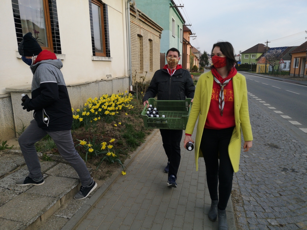 Ihned s vypuknutím epidemie byla nabídnuta pomoct vedení obce Čejkovice od našeho oddílu. V Čejkovicích je o seniory dobře postaráno a našich služeb potřeba není. Jsme rádi, že jsme mohli pomoct svým bližním s roznosem desinfekčních prostředků. Vedení obce Čejkovice zajistilo do každého domu desinfekční prostředek na ruce a my jsme měli možnost pomoct s roznosem do jednotlivých domácnosti v obci.