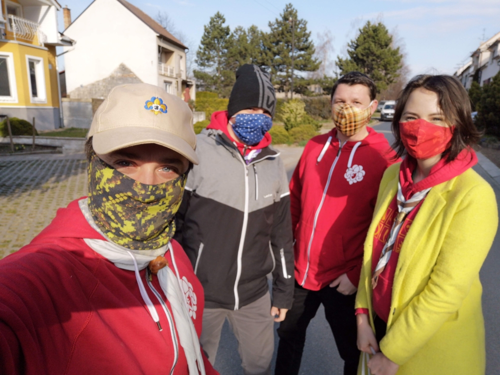 Ve světě řádí pandemie koronaviru COVID-19 a skauti nestojí stranou. Plnoletí skauti pomáhají kde to jenom jde. Někde například například nakupují seniorům léky a potraviny, protože senioři jsou nejohroženější. Jinde skauti slouží na krizových linkách, kde poskytují duchovní oporu lidem, kteří jsou zoufalí. Jinde skauti hromadně šijí roušky, vyrábí na 3D tiskárnách ochranné štíty pro záchranáře.