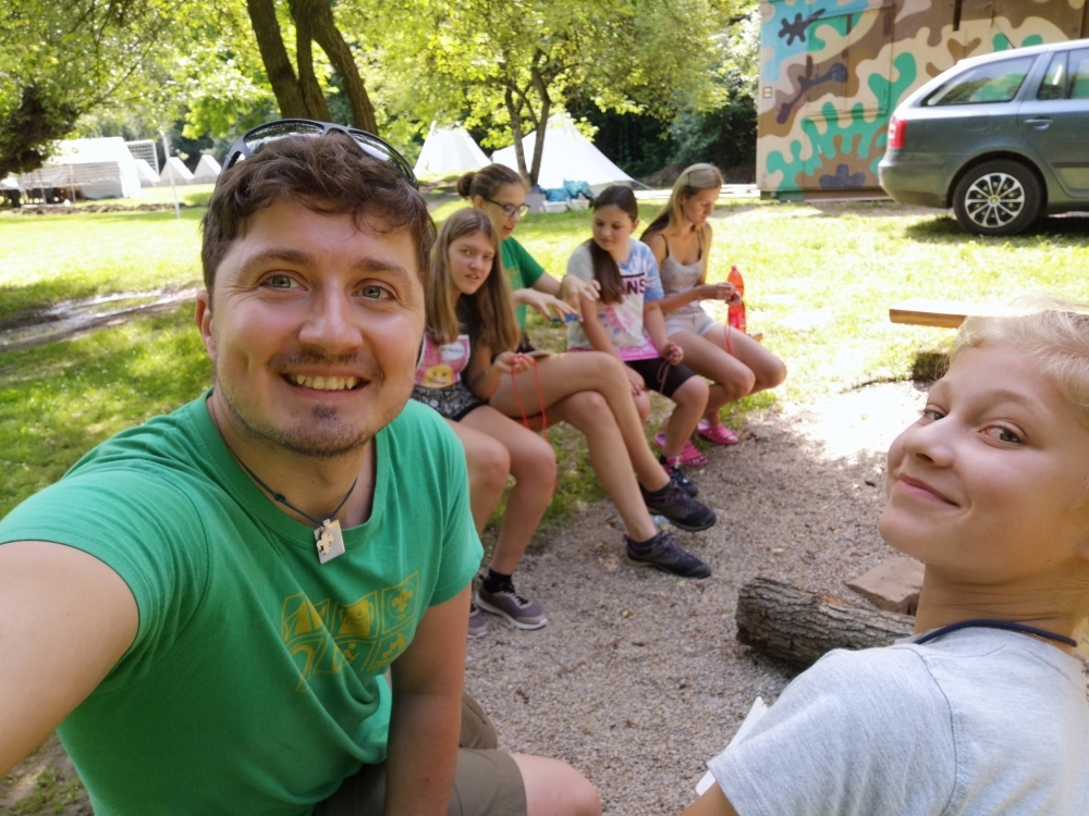 První den v červenci nás všechny rádce vedoucí oddílu v 17:30 u klubovny posadil do aut a zavázal nám oči, abychom nevěděli kam jedeme. Po přibližně hodině a půl jsme dorazili na místo. Všichni jsme byli překvapení, protože jsme se právě nacházeli na našem tábořišti v Nové Vsi u Oslavan. Bylo potřeba abychom pohlíádali tábořiště, než přijedou tábory. A ve hlídání se prostřídali všechny oddíly ze střediska Ratíškovice. Na začátek jsme zašli pro pitnou vodu, nasekali dřevo a vykopali díry na oheň, aby nám bylo v teepee v noci teplo. Po večeři, u které se zpívalo a hrálo na kytaru nás čekala hustokrutopřísná noční hra. Byla ve stylu druhé světové války, kdy Němečtí vojáci vtrhli do skautského tábora, z kterého všechny vyhnali (některé dokonce zabili), aniž by si mohli něco vzít. Nejdůležitější věci, co má každý oddíl jsou kronika, sekera práce a vlajky. Měli jsme se za úkol plížit do tábora a získat toho co nejvíce, ale aby nás žádný z vedoucích nezajal. Další den na nás už nic složitého nečekalo, až na jednu hru, u které jsme museli zapojit mozkové závity a splnit několik úkolů, např. rozluštit šifru, zavázat uzly nebo vyjmenovat body skautského zákona. Na oběd jsme si opekli špekáčky a až do odjezdu, který byl ve večerních hodinách jsme hráli různé skvělé hry, které jsme si sami připravili. Z celé výpravy jsme si odnesli spoustu zážitků a jsme zvědaví na další.