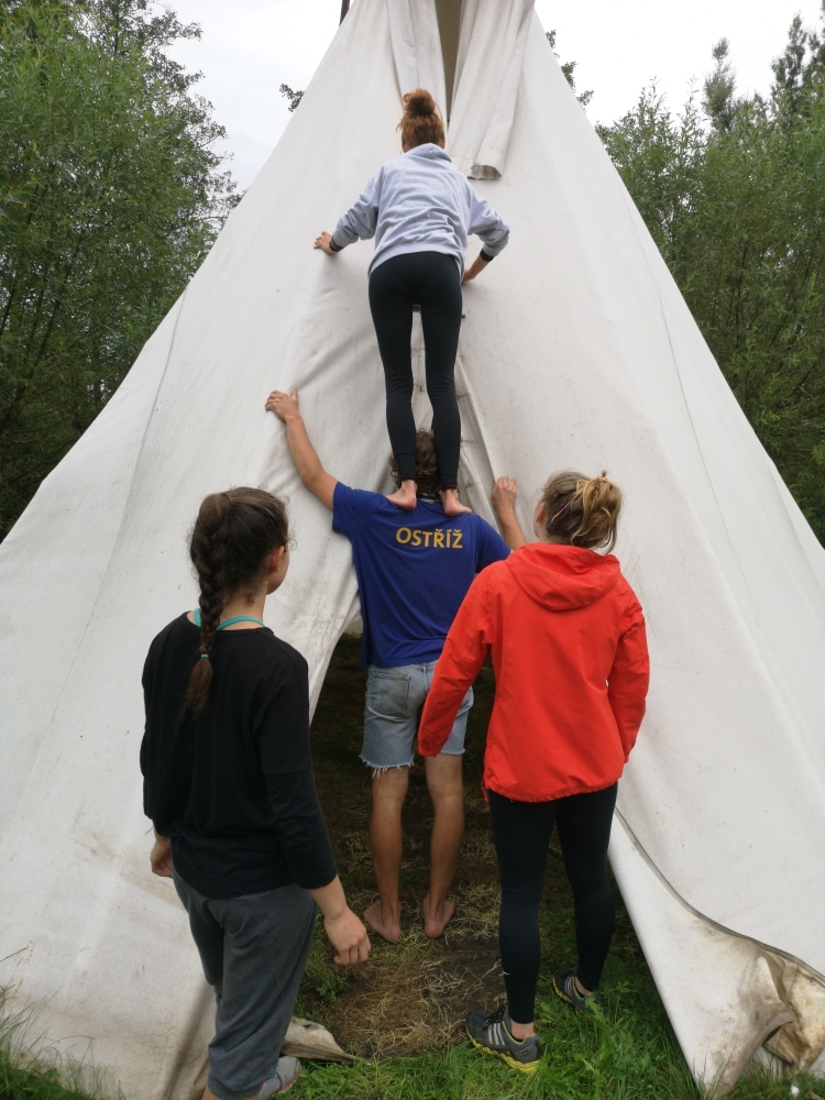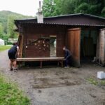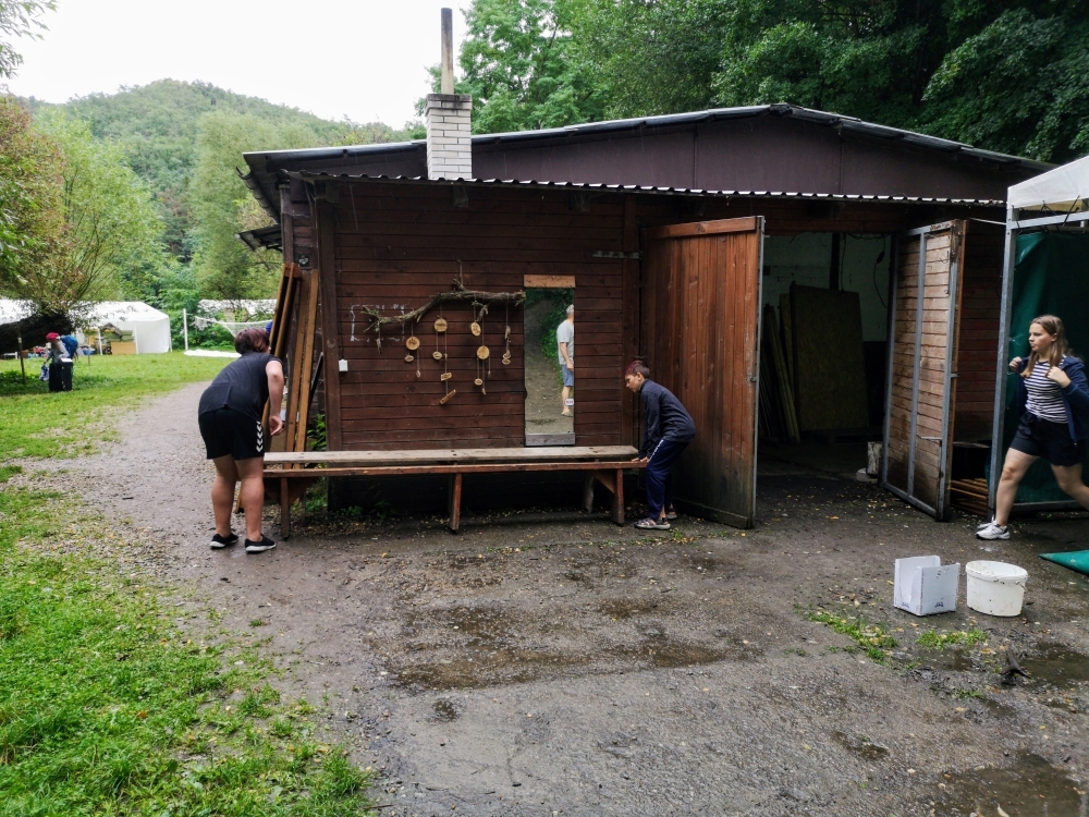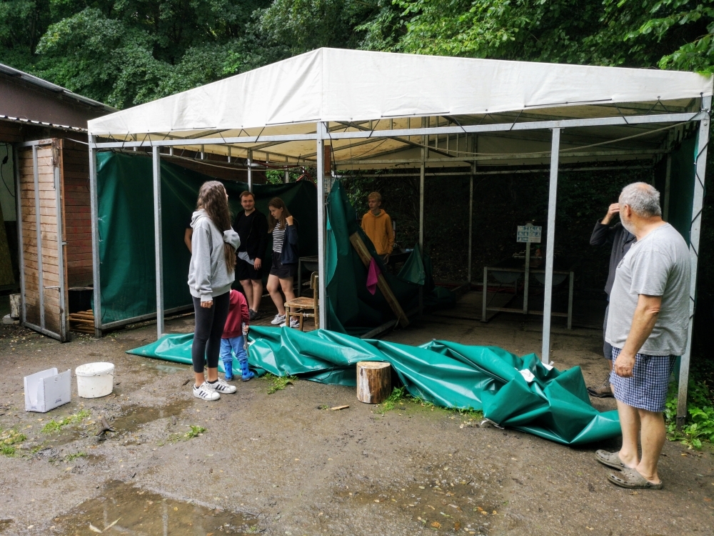 I tento rok jsme nemohli chybět u každoročního bourání našeho tábořiště v Nové Vsi u Oslavan. Den předem a to 28.8. se konal táborák na farní zahradě u nás v Čejkovicích, na kterém jsme měli nachystaný program pro děti. Večer po akci šla část z nás ke Zbyňovi (náš vedoucí oddílu), kde jsme přespali a část domů. Ráno asi v šest hodin se k nám připojili ti co spali doma a vyrazili jsme na cestu. Na místě už na nás čekali oddíl Trojka z Ratíškovic a taky čekatelský kurz, který toho dne 29.8. akorát končil. To, co jsme si na začátku prázdnin postavili, to jsme si i zbourali. Jelikož byla účast opravdu velká, všechno jsme měli hotové už ve dvě hodiny odpoledne. Před odjezdem bylo potřeba ještě všechno uschovat na svoje místo na příští rok, roztáhnou v MASHi většinu plachet na stany, aby pořádně vyschly, protože v noci pršelo a taky důkladně zkontrolovat MASH, např. jestli jsou upevněná okna nebo vyplé pojistky. Z tábora jsme odjížděli kolem třetí hodiny. Po cestě jsme se ještě zastavili na zasloužený oběd a v podvečerních hodinách jsme byli zpátky v pohodlí domova.