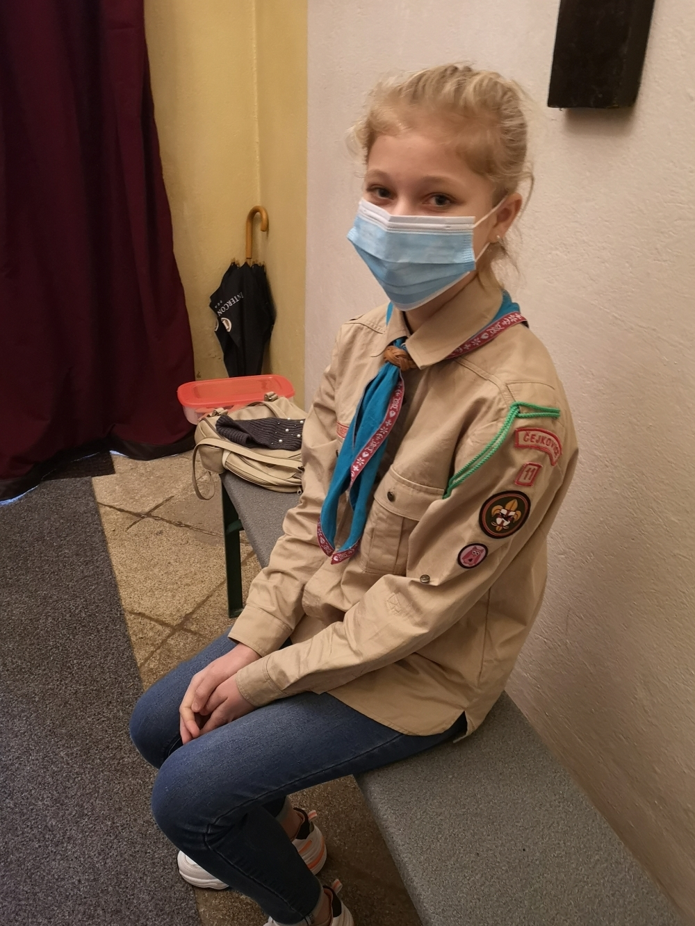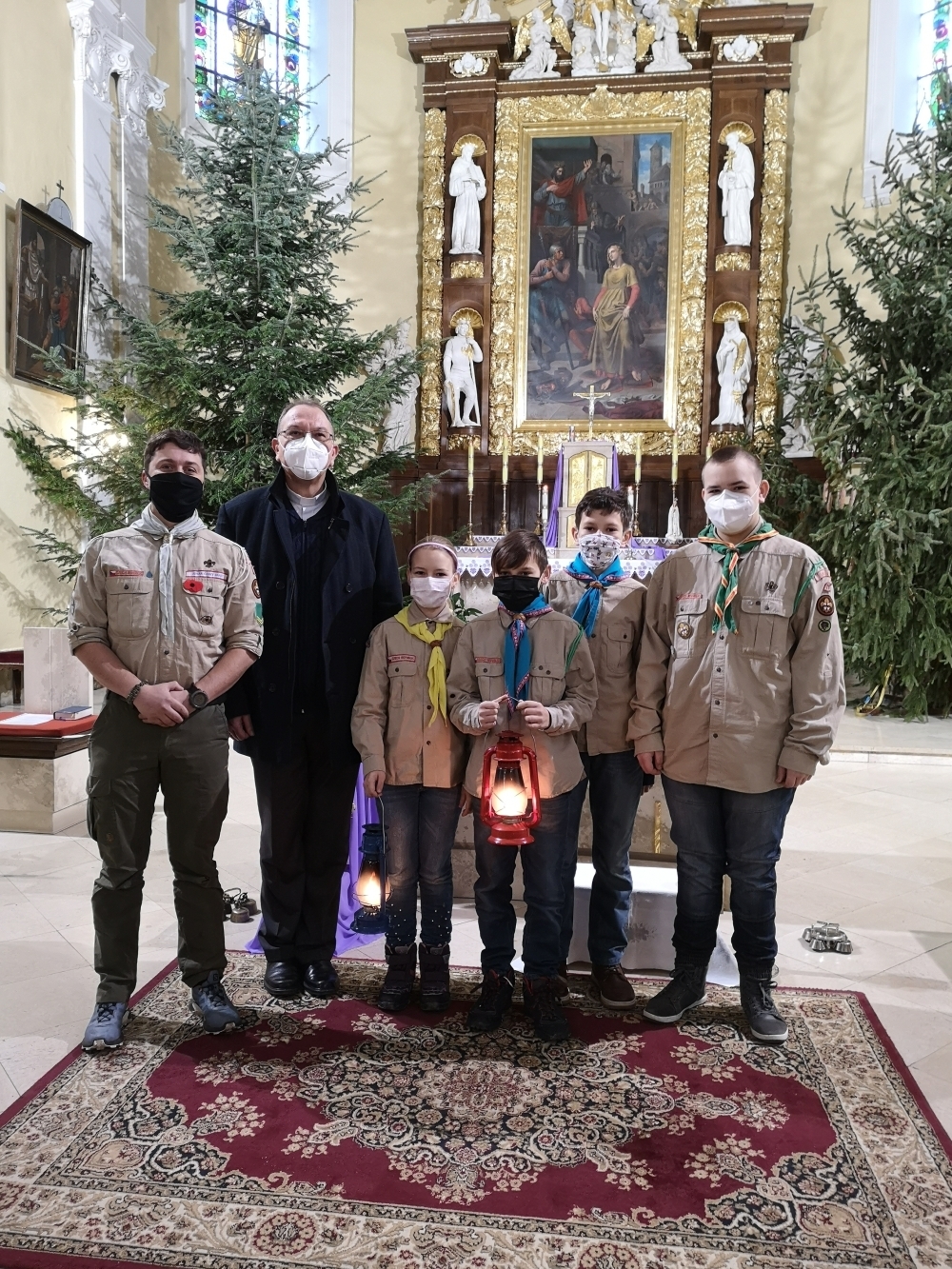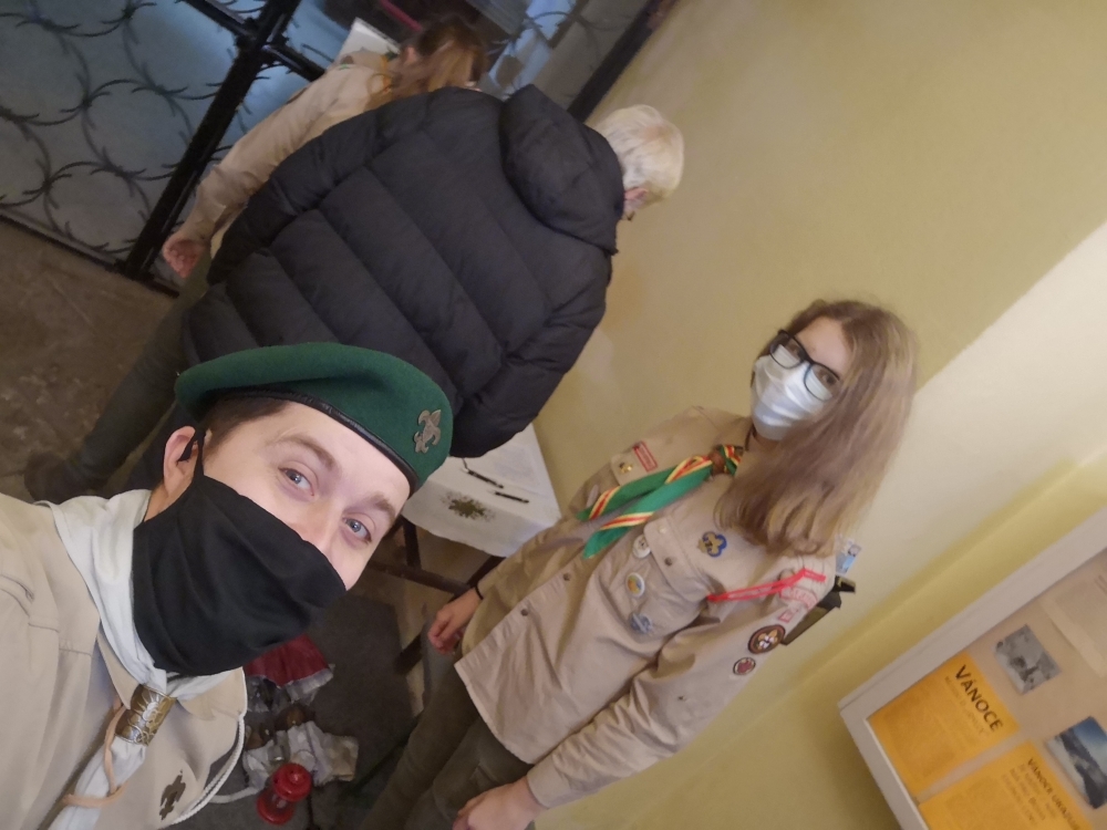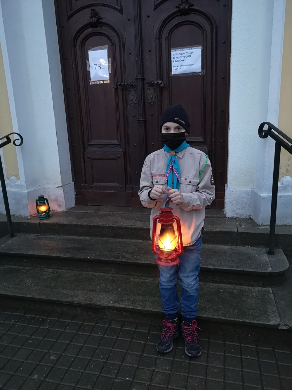 Byla to výzva… Dlouho jsme nevěděli a debatovali na středisku nad tím, jak vzhledem k hygienickým opatřením pojmout Betlémské světlo. Nakonec jsme zvolili jinou formu než v minulých letech a Betlémské světlo jsme sice přivezli do Čejkovic, Vrbice a na Starý Poddvorov, ale po domech jsme jej neroznášeli. Kdo měl o světlo zájem mohl si pro něj přijít. Členové oddílu proto drželi po dva dny stráž u Betlémského světla. V Čejkovicích a na Vrbici u kostela a ve Starém Poddvorově u zvonice. Čejkovští si světlo slavnostně přinesli i na mši. Vše se samozřejmě uskutečnilo s rouškami a desinfekcí. Na Štědrý den, jak je již dlouho naší oddílovou tradicí, se pak rádcové za velmi přísných opatřeních sešli na společném čaji. Byl to sice nestandardní rok, ale jistě stál za to. Z našich rukou světlo obdrželo bezmála 70 lidí a o těch kteří světlo získali dále se již nikdy nedozvíme. Věříme že tento malý plamínek naděje nám všem prosvítí letošní rok 2021 a budeme mít naději na lepší zítřky.