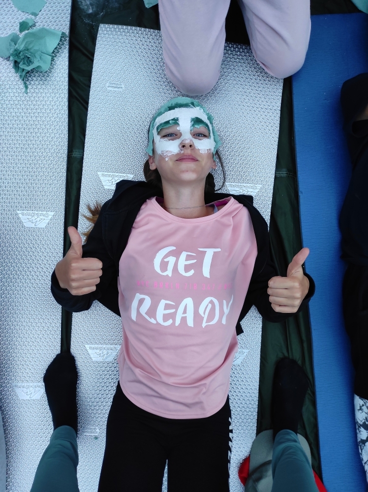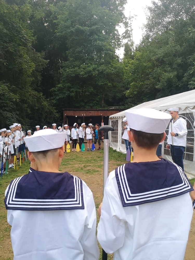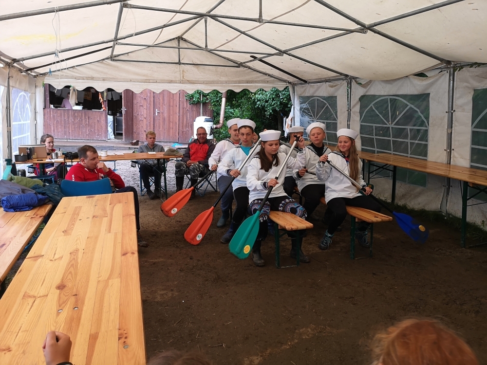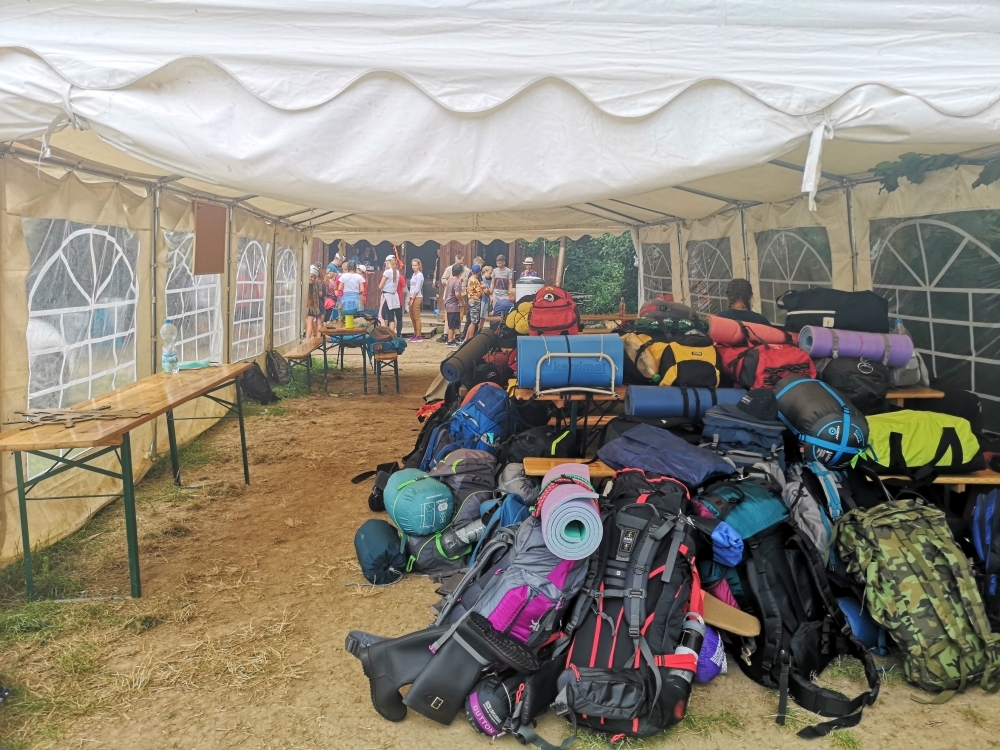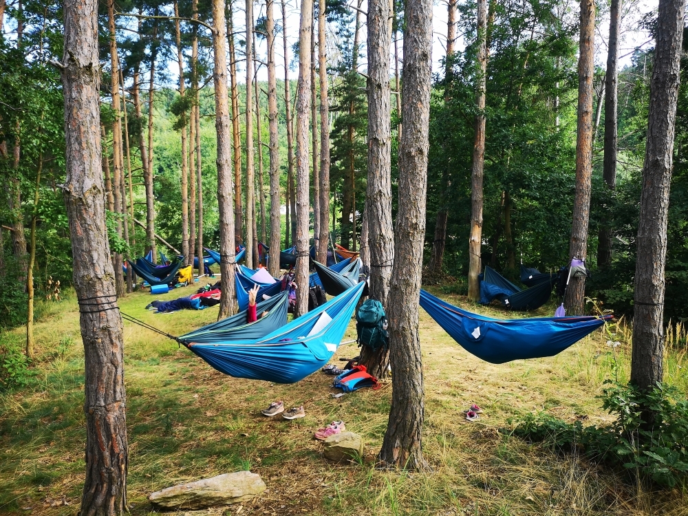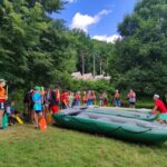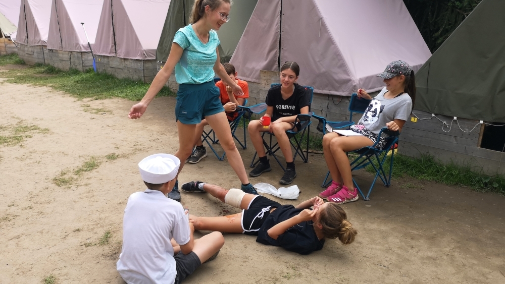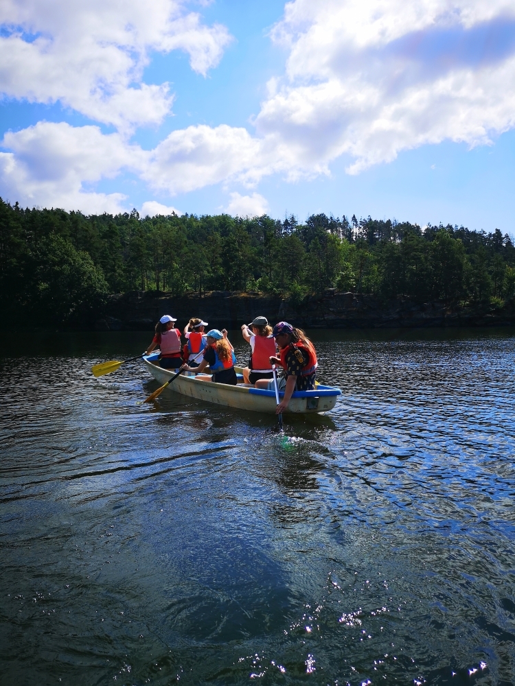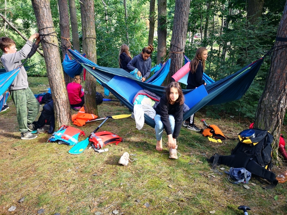 Jeden den jsme dokonce přespávali na pustém ostrově, kam jsme dopluli večer na lodích a spali mezi stromy v hamakách. Další dny jsme se věnovali odborkám (něco jak bobříci) jako např. záchranář, vodák, obřadník, trosečník, zdravotník a další. Každý si mohl vyzkoušet například volání sanitky. Nebo převracení raftu, který se za normální situace skoro nedá převrátit. Ale zvládl to každý! Byli jsme opravdu pyšní.. Ale jedním z nejtěžších úkolů si prošel rover Honza. Ten musel strávit dva dny mimo tábořiště jen s tím, co měl po kapsách, ale velkou skautskou výzvu zvládl bravurně. Vzhledem k situaci ohledně koronaviru probíhal tábor s několika omezeními. Tak jako minulý rok, bylo nutné několikrát denně dezinfikovat převážně jídelny, toalety i další prostory.