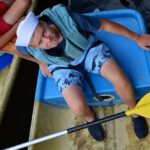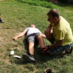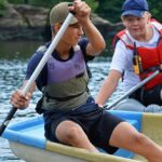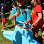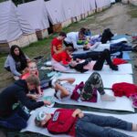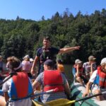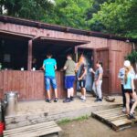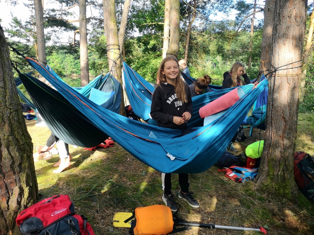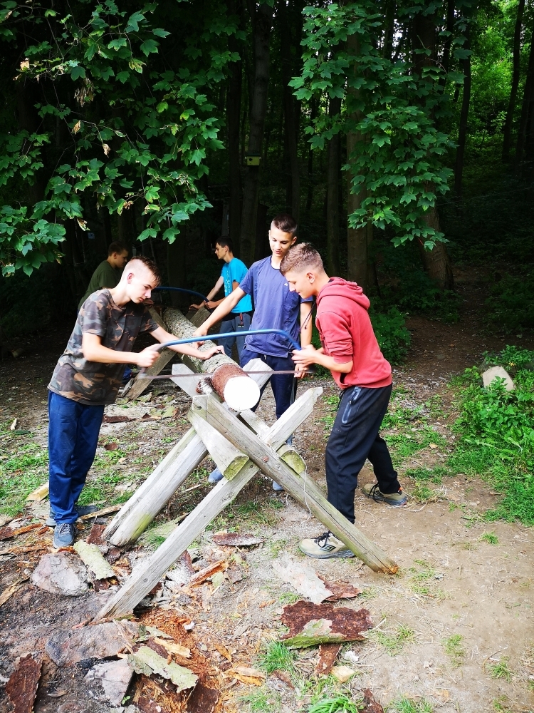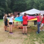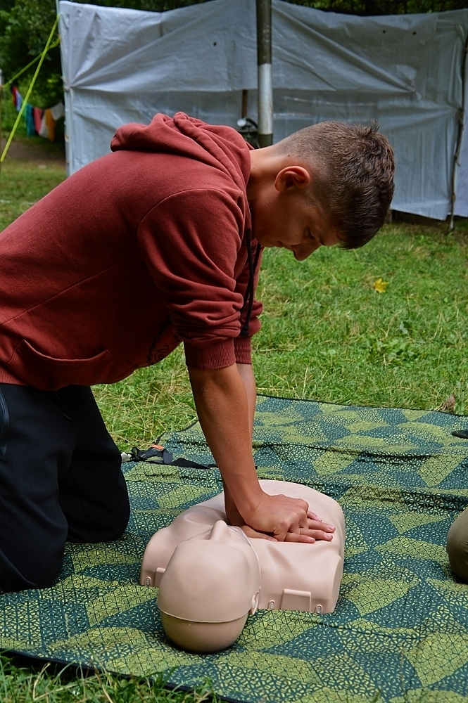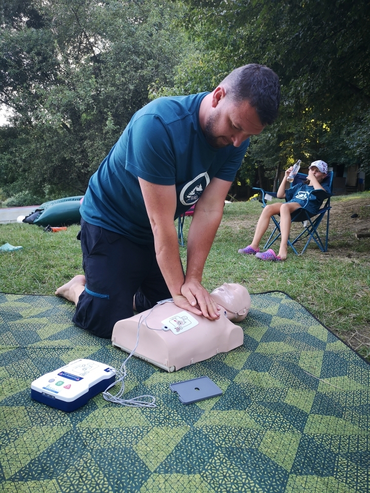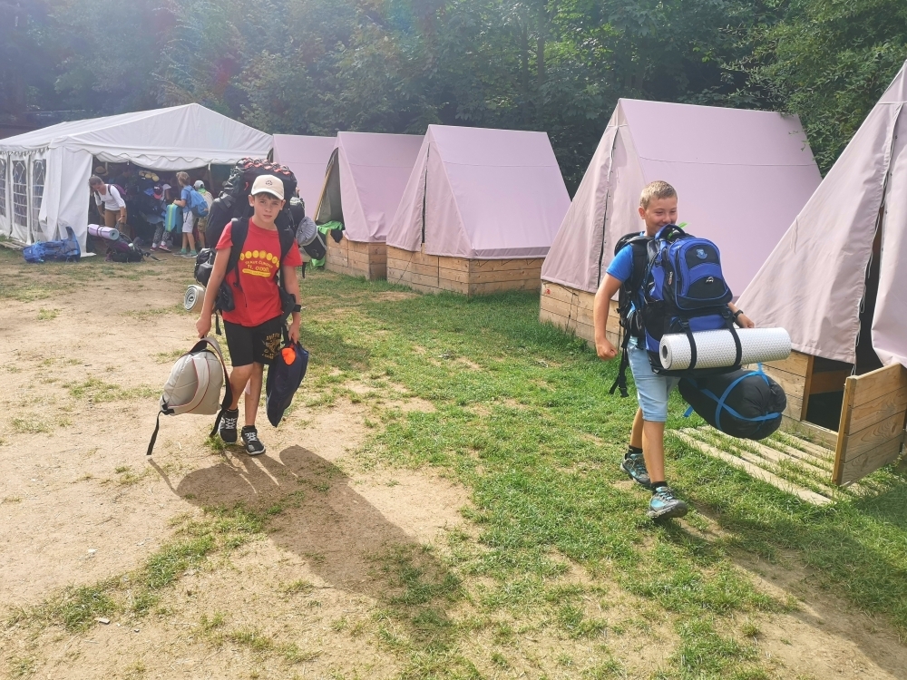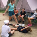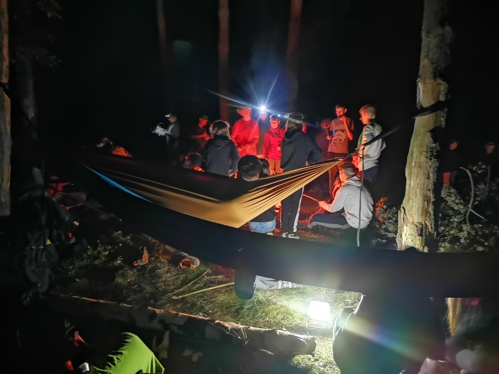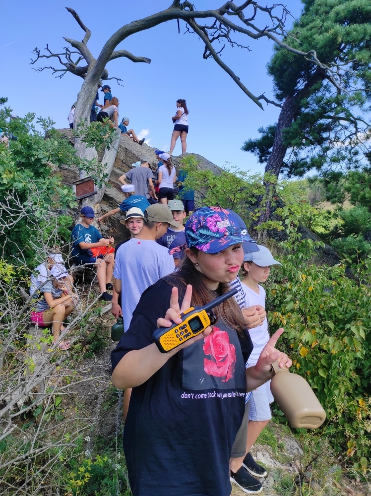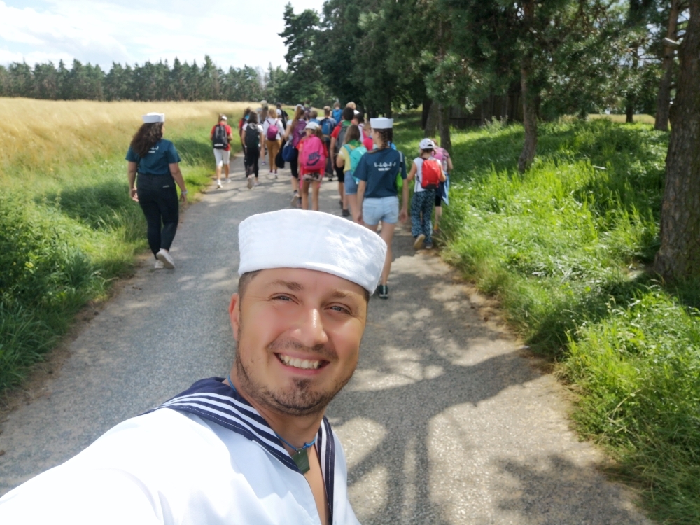 Jeden den jsme dokonce přespávali na pustém ostrově, kam jsme dopluli večer na lodích a spali mezi stromy v hamakách. Další dny jsme se věnovali odborkám (něco jak bobříci) jako např. záchranář, vodák, obřadník, trosečník, zdravotník a další. Každý si mohl vyzkoušet například volání sanitky. Nebo převracení raftu, který se za normální situace skoro nedá převrátit. Ale zvládl to každý! Byli jsme opravdu pyšní.. Ale jedním z nejtěžších úkolů si prošel rover Honza. Ten musel strávit dva dny mimo tábořiště jen s tím, co měl po kapsách, ale velkou skautskou výzvu zvládl bravurně. Vzhledem k situaci ohledně koronaviru probíhal tábor s několika omezeními. Tak jako minulý rok, bylo nutné několikrát denně dezinfikovat převážně jídelny, toalety i další prostory.
