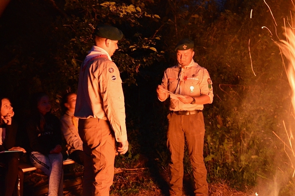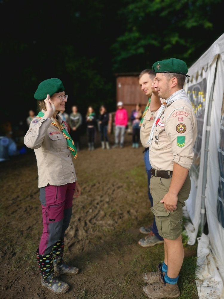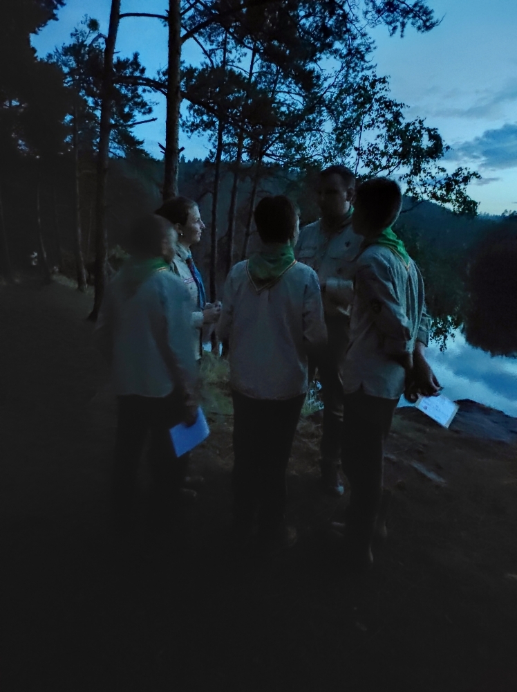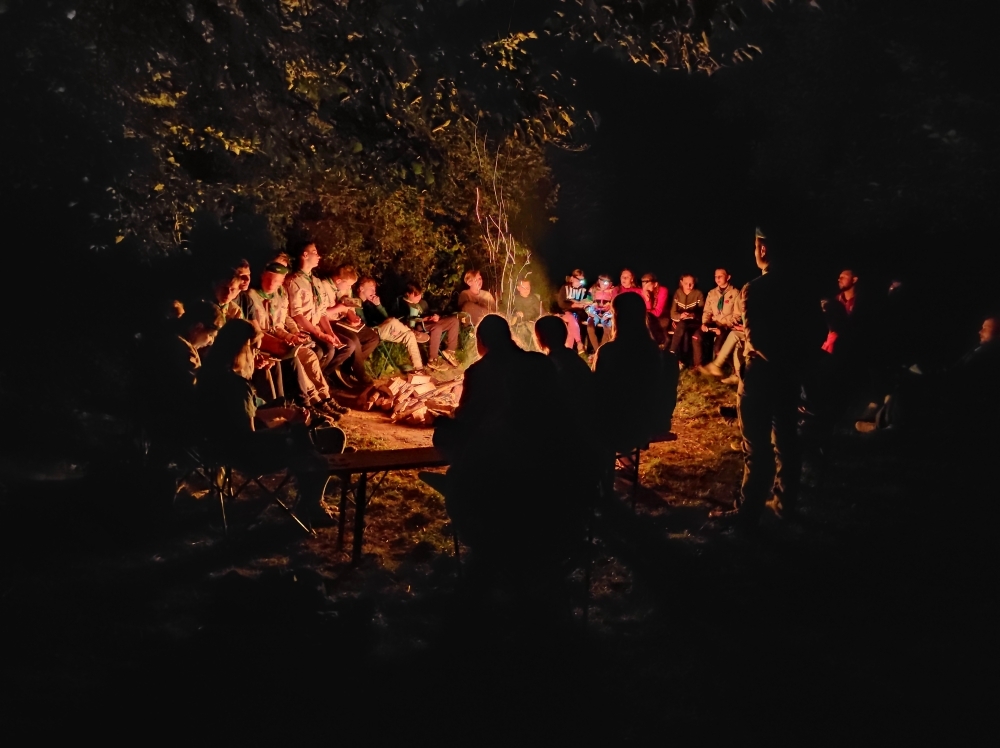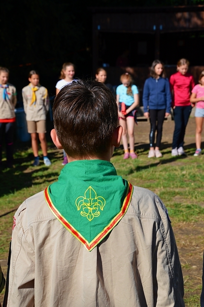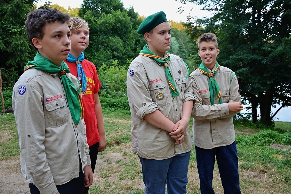 Tradiční součástí našeho tábora je i mše, která proběhla za zpřísněných hygienických podmínek. Letos si skautským slibem prošlo několik světlušek a vlčat, ze kterých už se stali skautky a skauti a můžeme se společně těšit na další a mnohem záživnější akce, protože se jim tímto rozšiřují i příležitosti. Slib samotný probíhal na nedalekém ostrově s tajemnou, noční atmosférou a slibovým ohněm. Rádci nám slibující poodváželi na lodích k ostrovu, kde si je oddílový rádce už organizoval. Nervozita šla cítit celým ostrovem, ale každý z nich to skvěle zvádl.