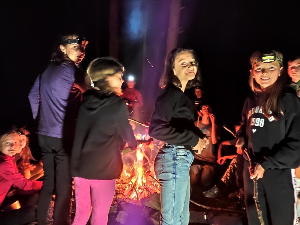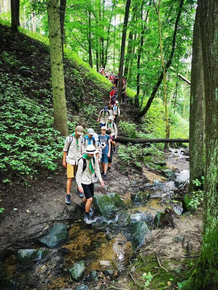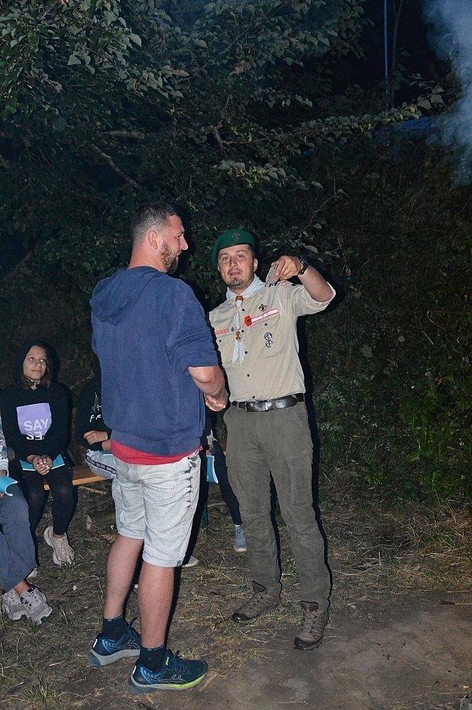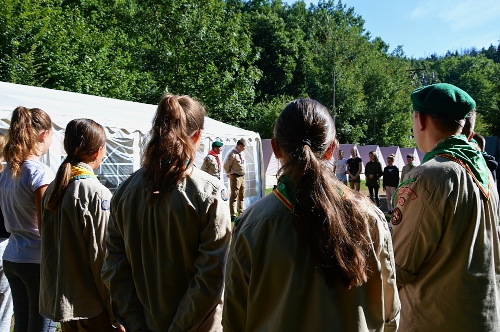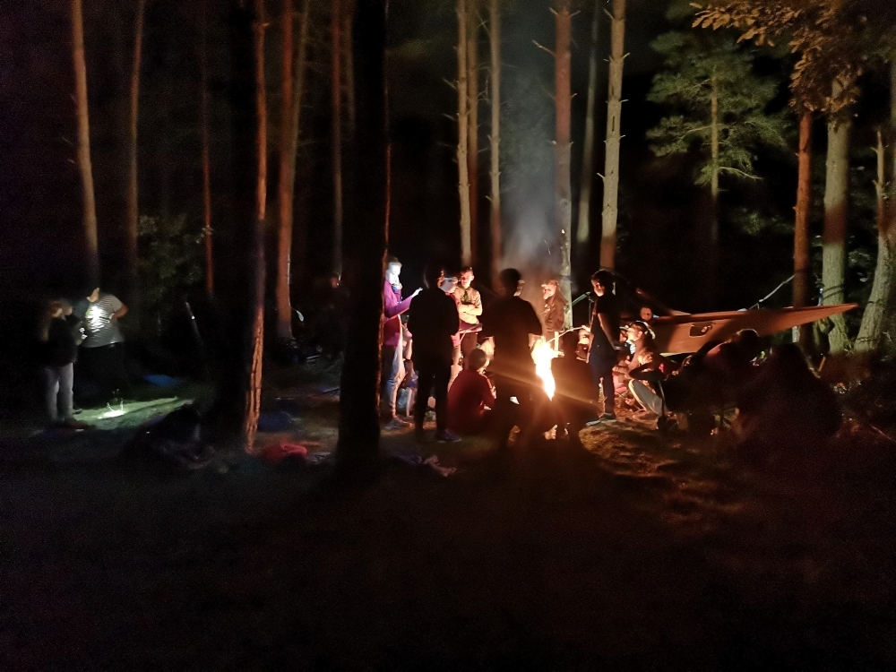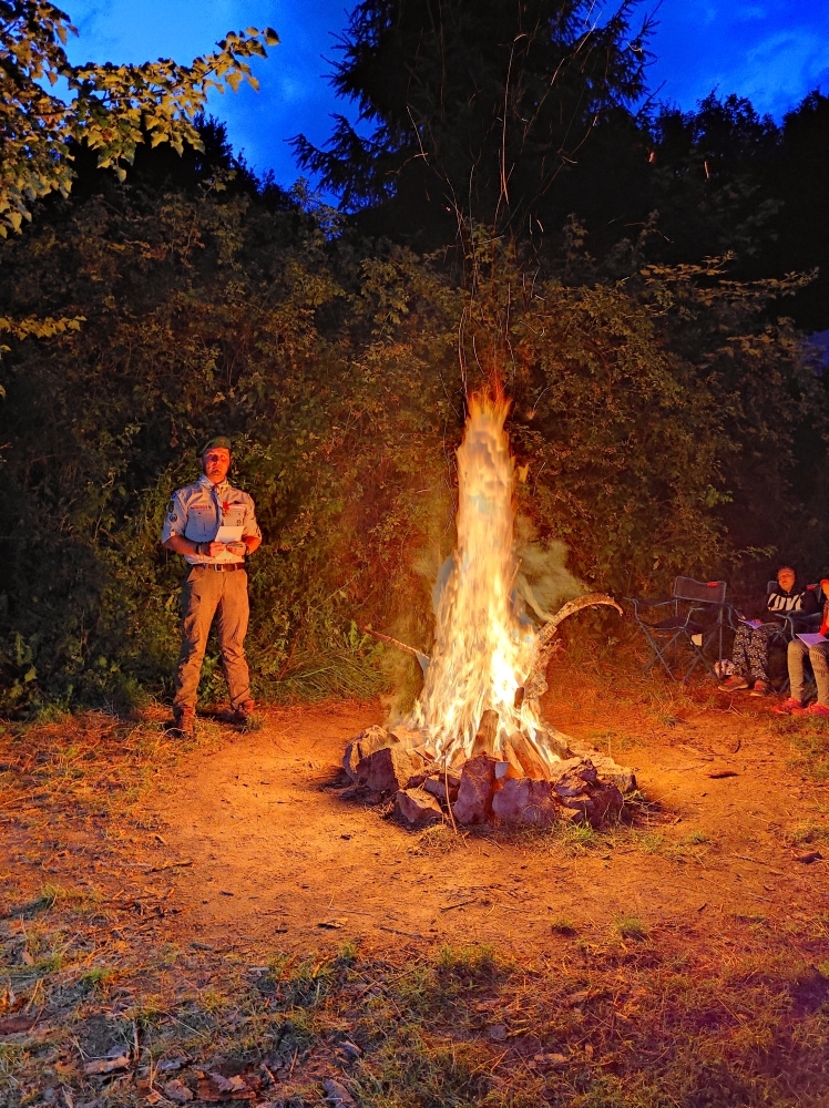 Tradiční součástí našeho tábora je i mše, která proběhla za zpřísněných hygienických podmínek. Letos si skautským slibem prošlo několik světlušek a vlčat, ze kterých už se stali skautky a skauti a můžeme se společně těšit na další a mnohem záživnější akce, protože se jim tímto rozšiřují i příležitosti. Slib samotný probíhal na nedalekém ostrově s tajemnou, noční atmosférou a slibovým ohněm. Rádci nám slibující poodváželi na lodích k ostrovu, kde si je oddílový rádce už organizoval. Nervozita šla cítit celým ostrovem, ale každý z nich to skvěle zvádl.