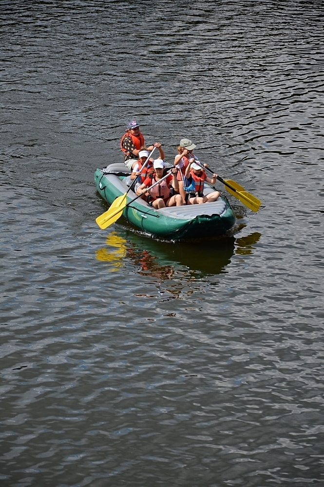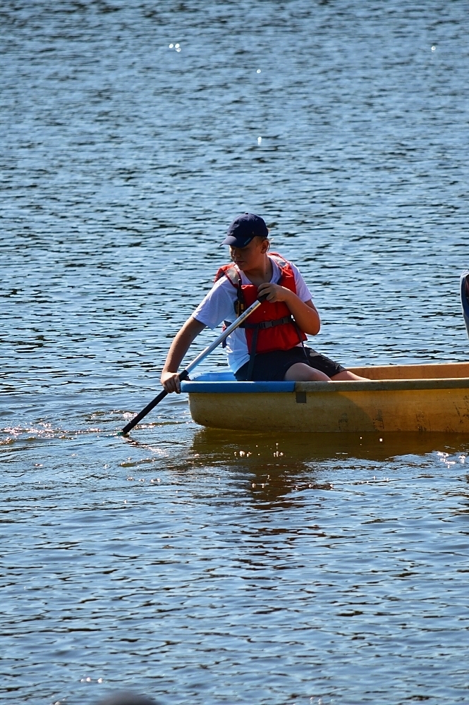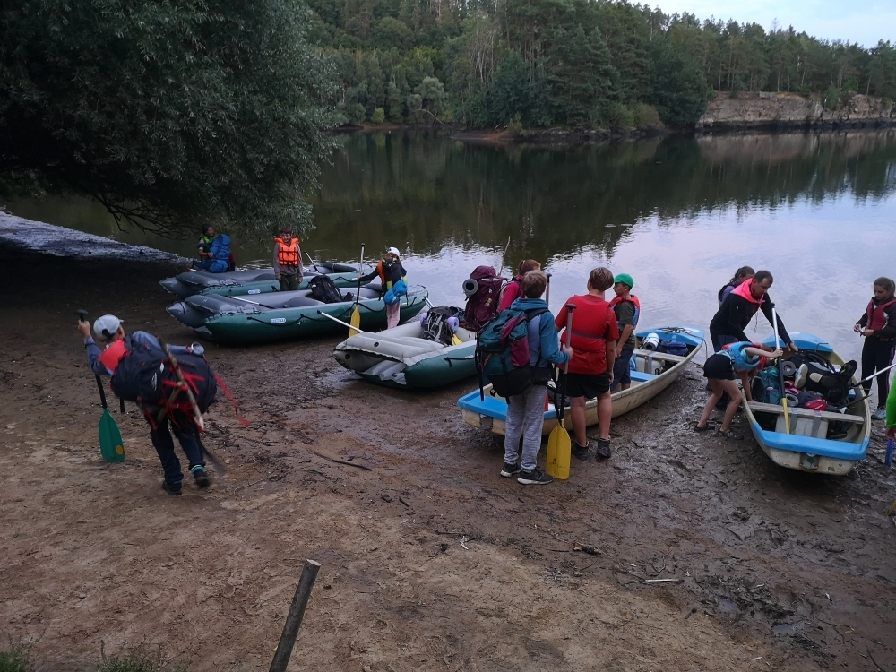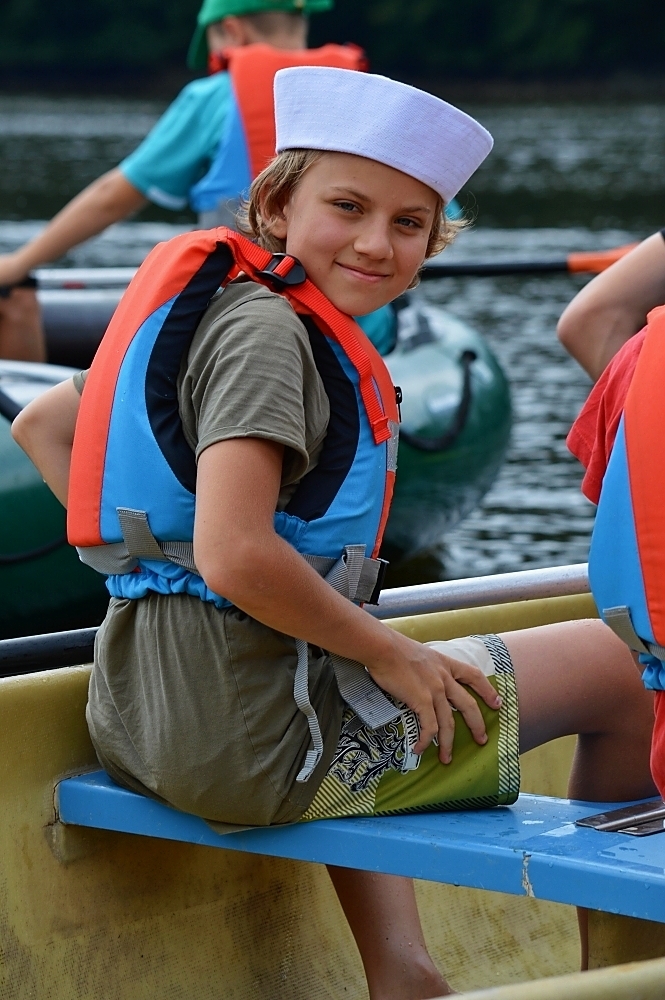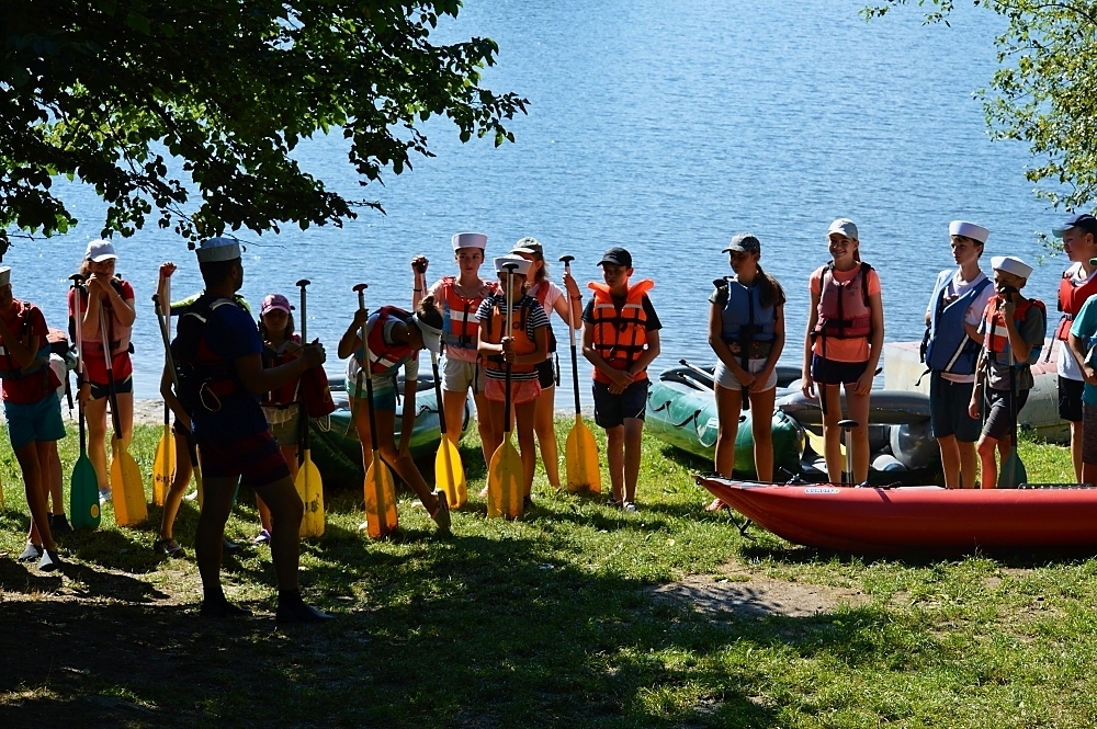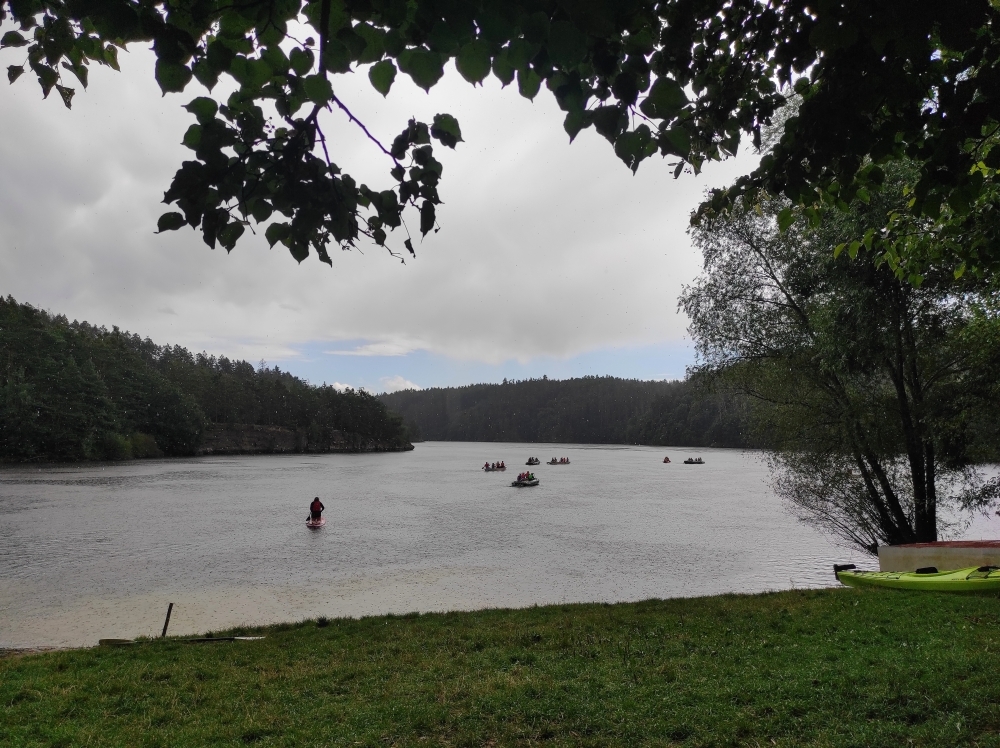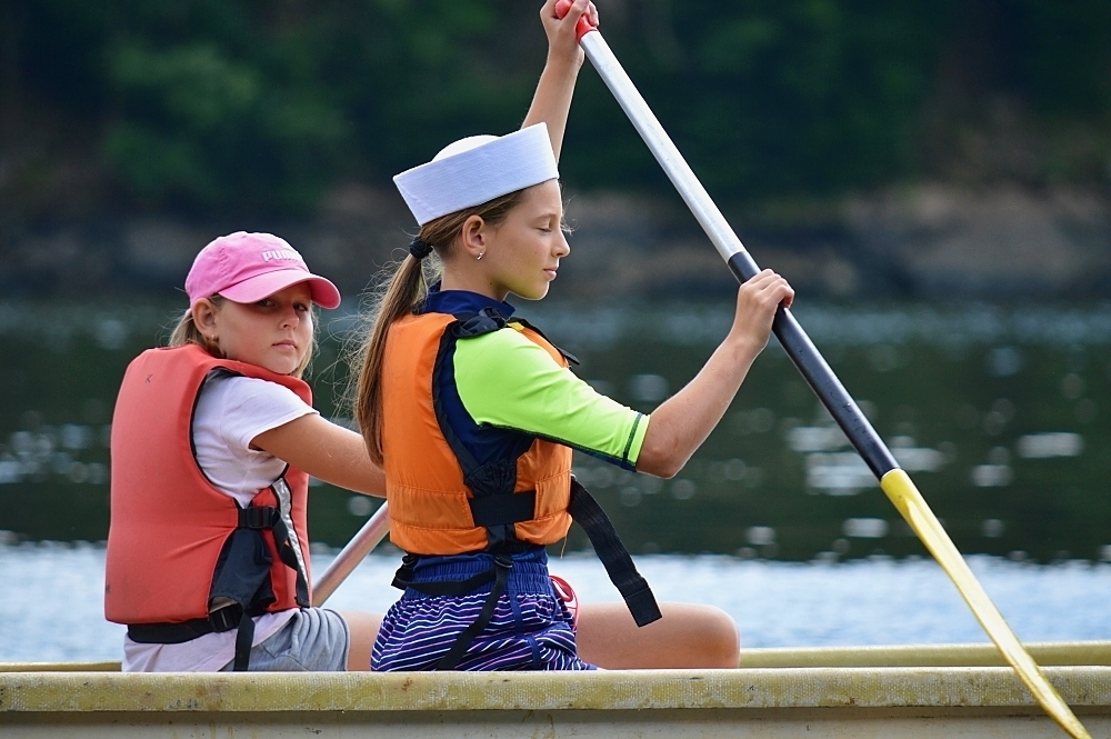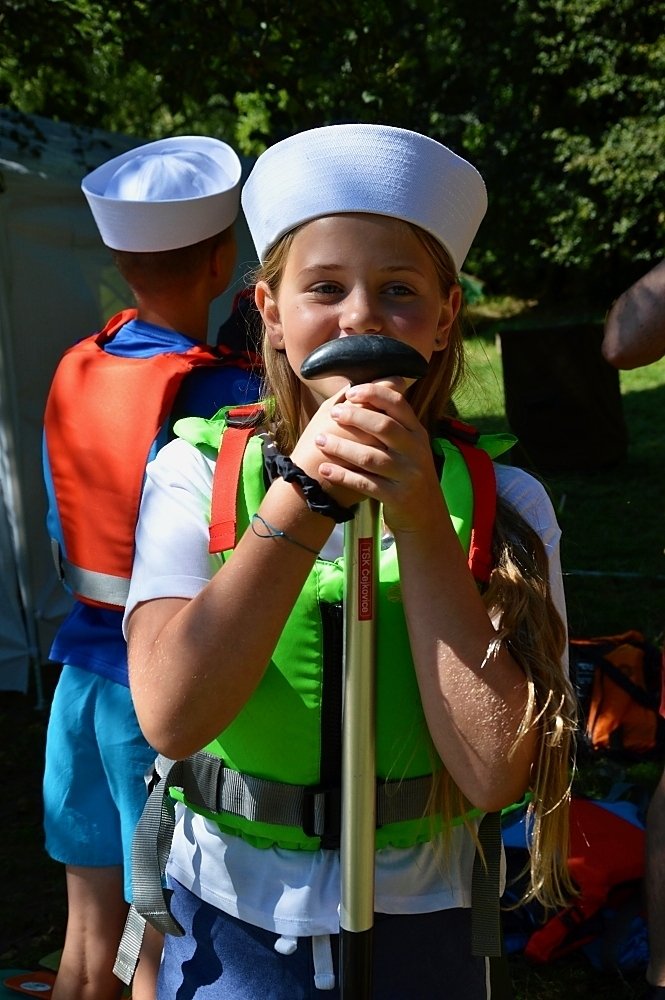 Letos nás nečekal jen jeden tábor, ale hned dva, souběžně běžící. Vodácký se konal na Dalešické přehradě. Tento tábor byl určený hlavně starším dětem. Čekalo nás nové neprozkoumané tábořiště, se kterým jsme se prvních pár dnů seznamovali stejně jako s ovládáním lodí. Děti byly rozděleny do tří flotil, z toho každá měla dva kormidelníky. Čili každá flotila měla dvě lodě a dvě posádky. Měli jsme tedy celkem šest lodí a na dalších pluli naši obratní vedoucí.