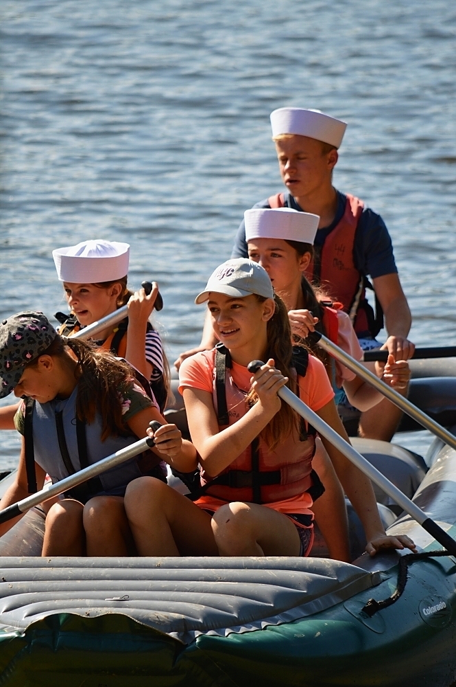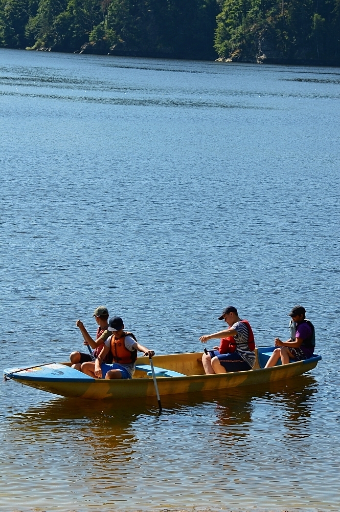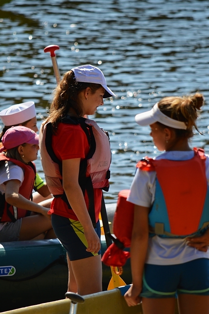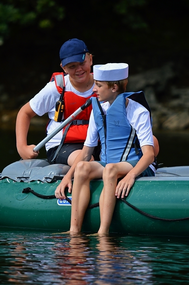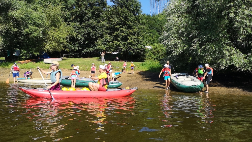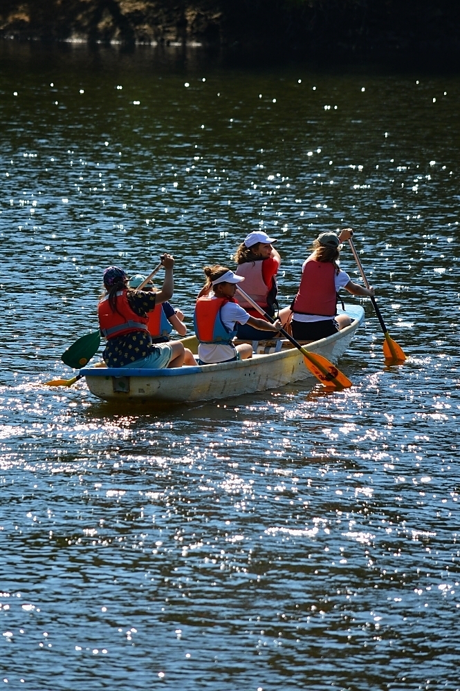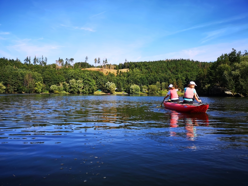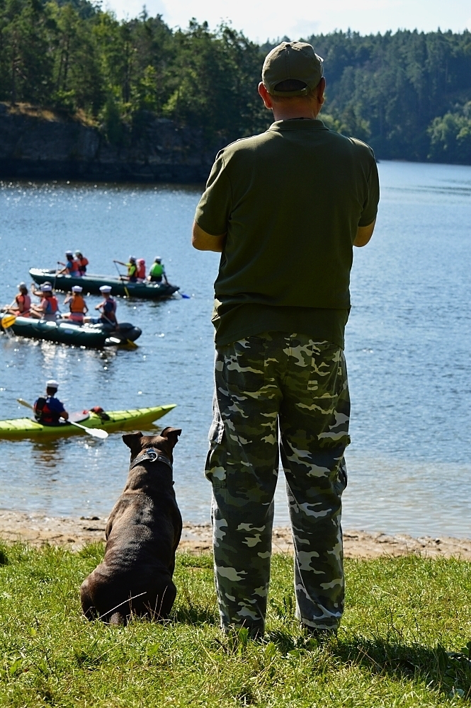 Letos nás nečekal jen jeden tábor, ale hned dva, souběžně běžící. Vodácký se konal na Dalešické přehradě. Tento tábor byl určený hlavně starším dětem. Čekalo nás nové neprozkoumané tábořiště, se kterým jsme se prvních pár dnů seznamovali stejně jako s ovládáním lodí. Děti byly rozděleny do tří flotil, z toho každá měla dva kormidelníky. Čili každá flotila měla dvě lodě a dvě posádky. Měli jsme tedy celkem šest lodí a na dalších pluli naši obratní vedoucí.
