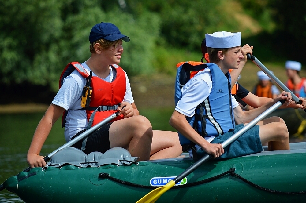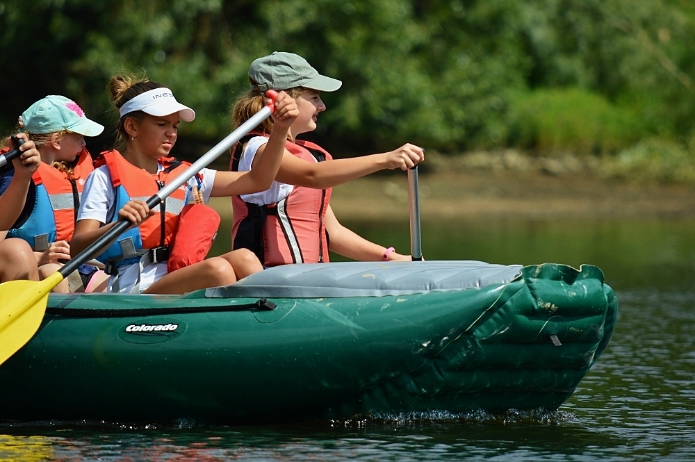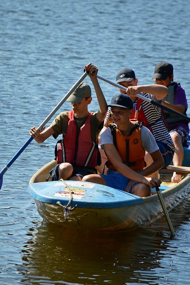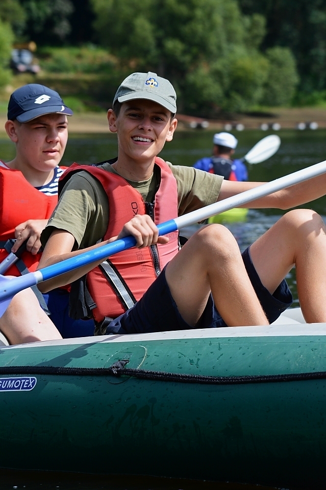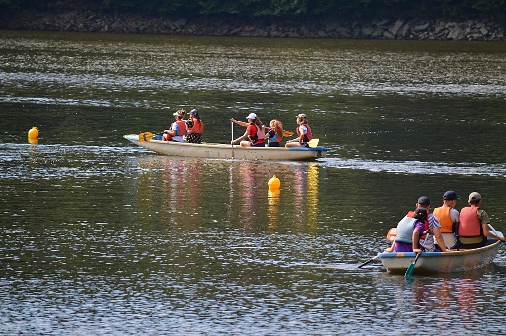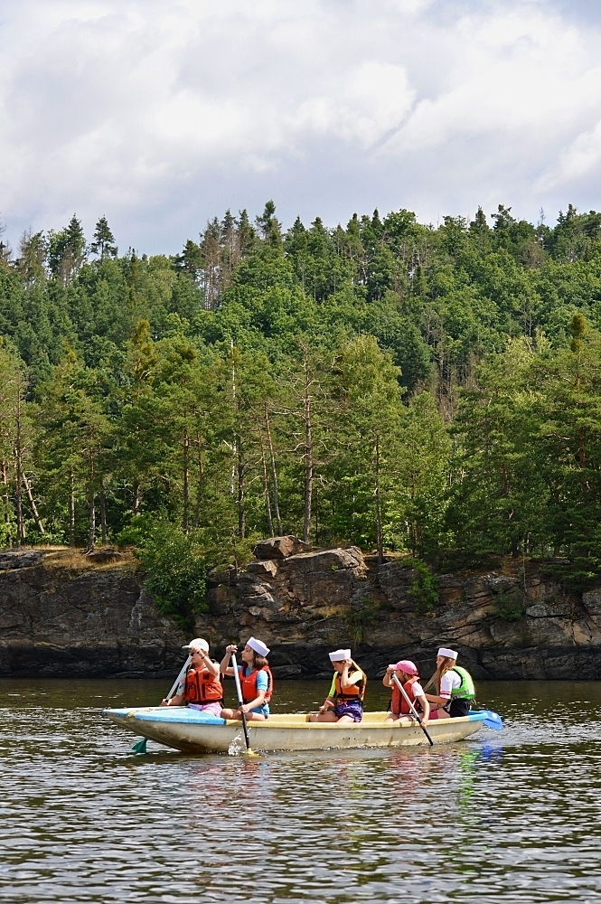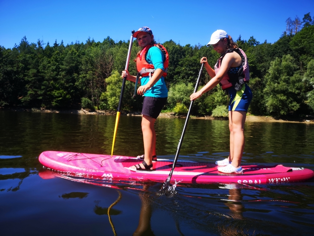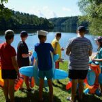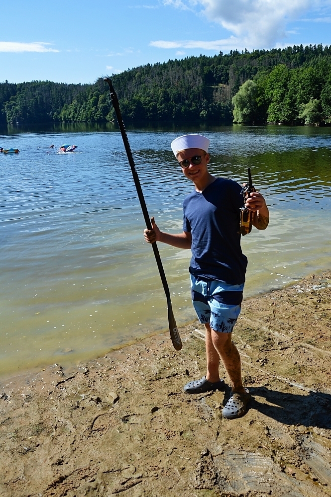 Letos nás nečekal jen jeden tábor, ale hned dva, souběžně běžící. Vodácký se konal na Dalešické přehradě. Tento tábor byl určený hlavně starším dětem. Čekalo nás nové neprozkoumané tábořiště, se kterým jsme se prvních pár dnů seznamovali stejně jako s ovládáním lodí. Děti byly rozděleny do tří flotil, z toho každá měla dva kormidelníky. Čili každá flotila měla dvě lodě a dvě posádky. Měli jsme tedy celkem šest lodí a na dalších pluli naši obratní vedoucí.