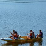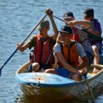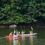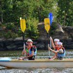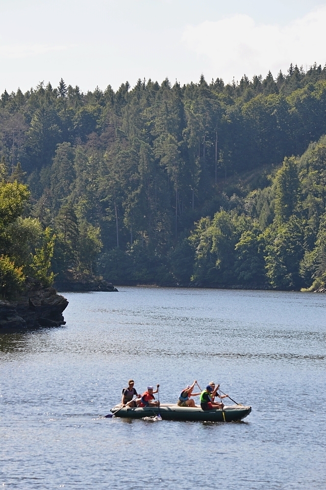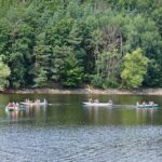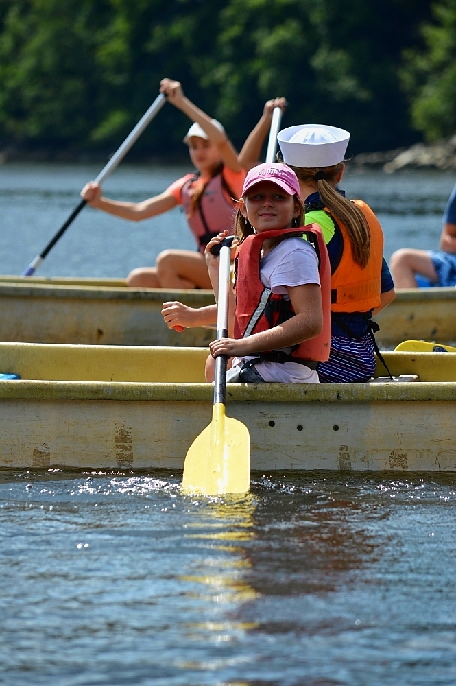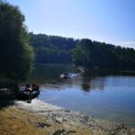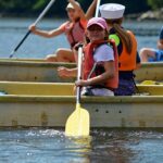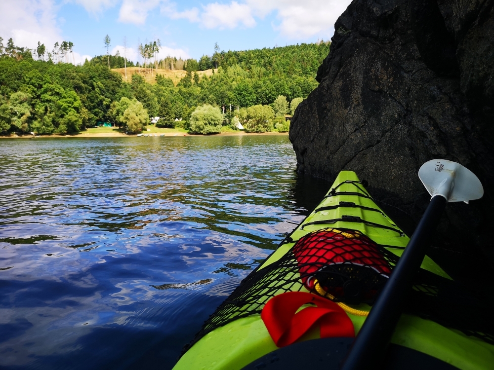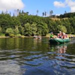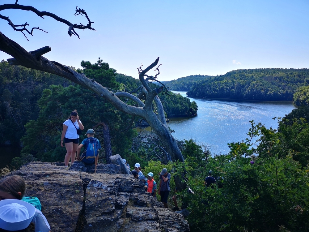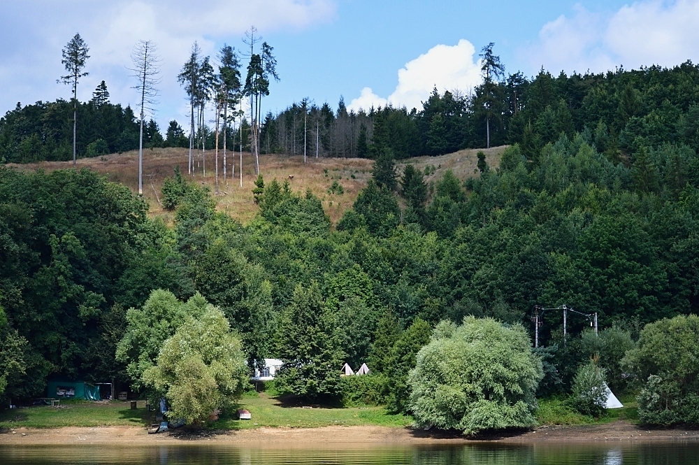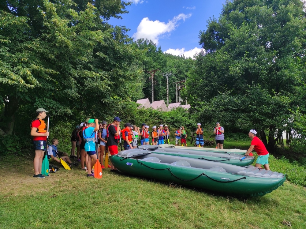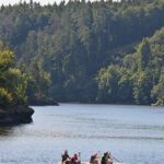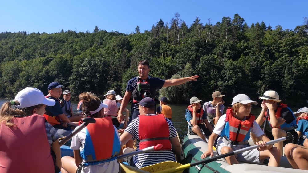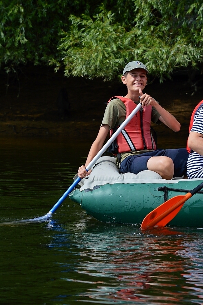 Letos nás nečekal jen jeden tábor, ale hned dva, souběžně běžící. Vodácký se konal na Dalešické přehradě. Tento tábor byl určený hlavně starším dětem. Čekalo nás nové neprozkoumané tábořiště, se kterým jsme se prvních pár dnů seznamovali stejně jako s ovládáním lodí. Děti byly rozděleny do tří flotil, z toho každá měla dva kormidelníky. Čili každá flotila měla dvě lodě a dvě posádky. Měli jsme tedy celkem šest lodí a na dalších pluli naši obratní vedoucí.