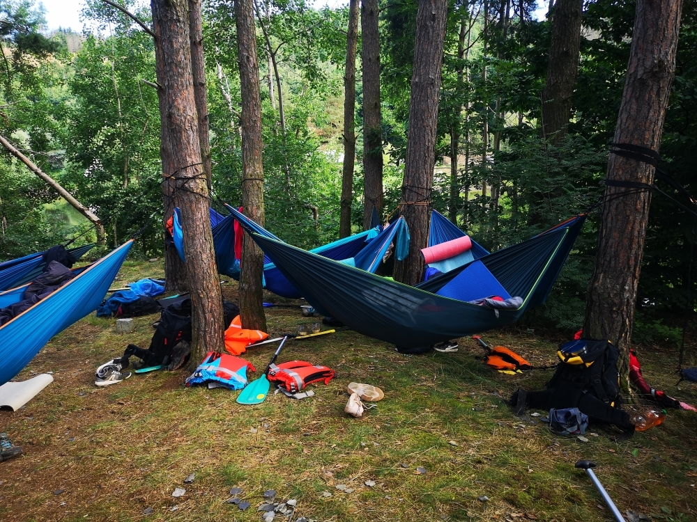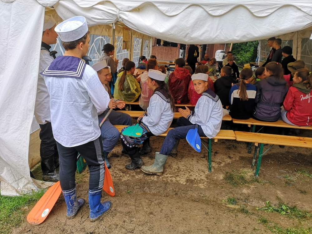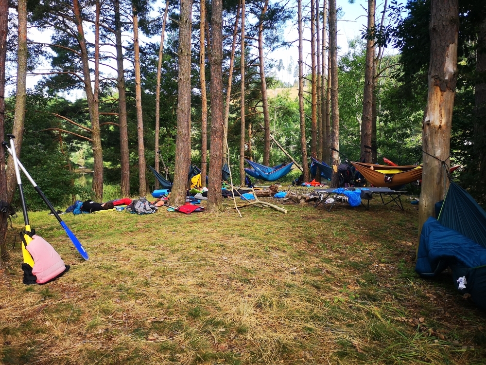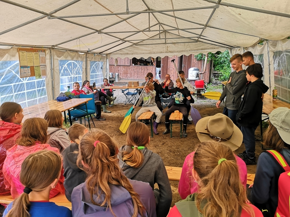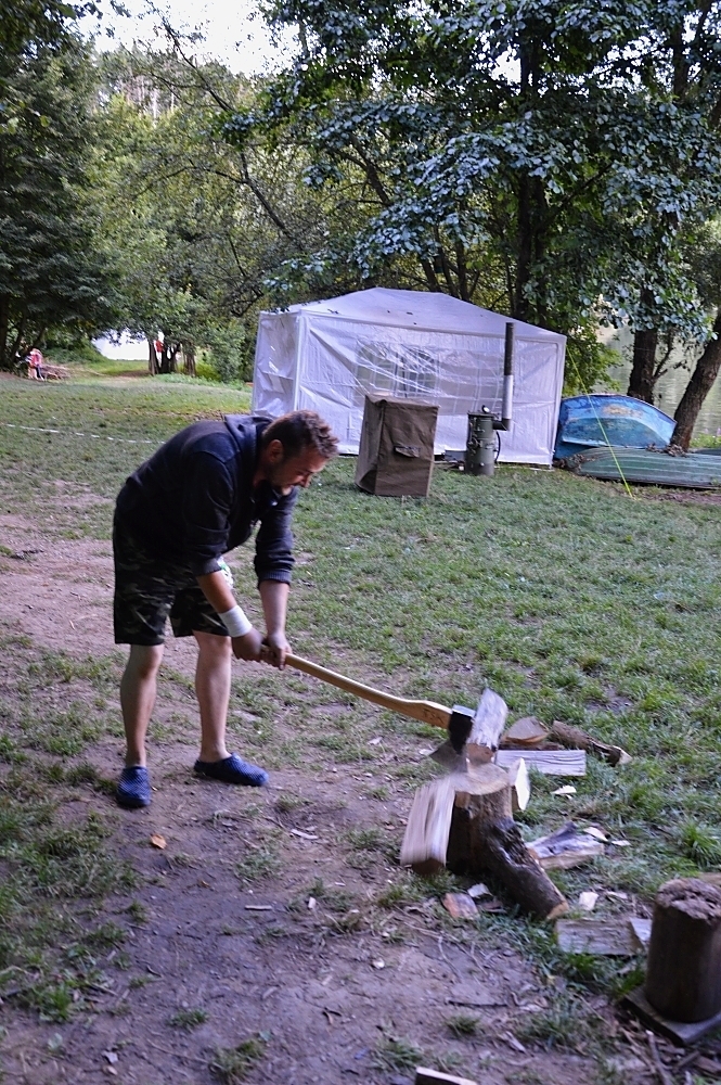V prvních dnech jsme si tedy užili vody hodně. Buď té, na které jsme se plavili, nebo té co nám kapala na nos. Ale nic z toho nás neodradilo, protože nepsaným jedenáctým bodem skautského zákona je: “Skaut je nepromokavý“.. Počasí bylo tedy velice divoké, jeden den vedoucím bouřka vyplavila tepee tak, že ohniště bylo plné vody. Naštěstí si s tímto velice dobře poradil Honza a dokázal zapálit oheň v naprosto mokrém prostředí.