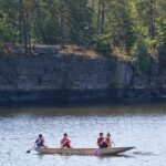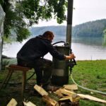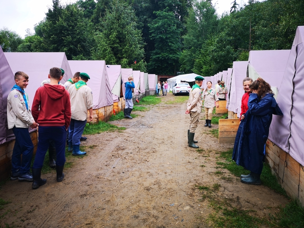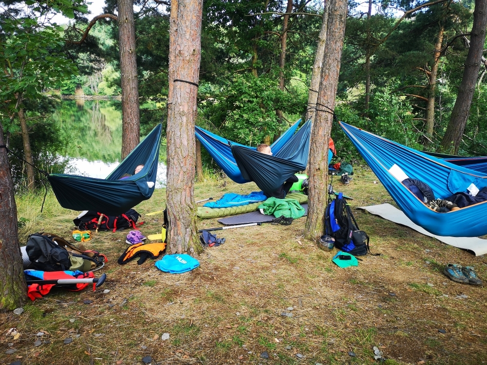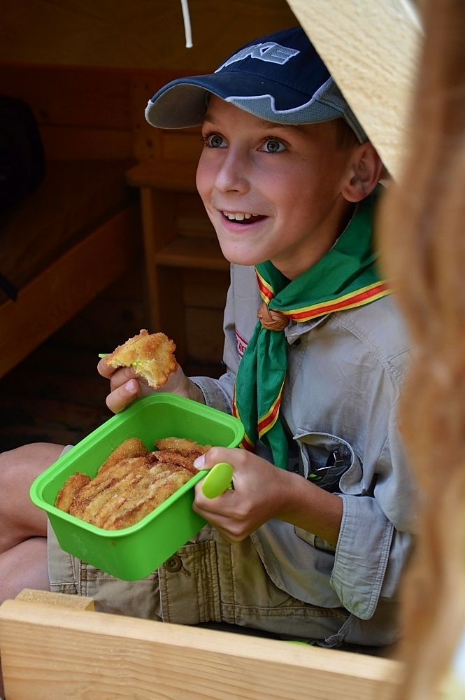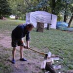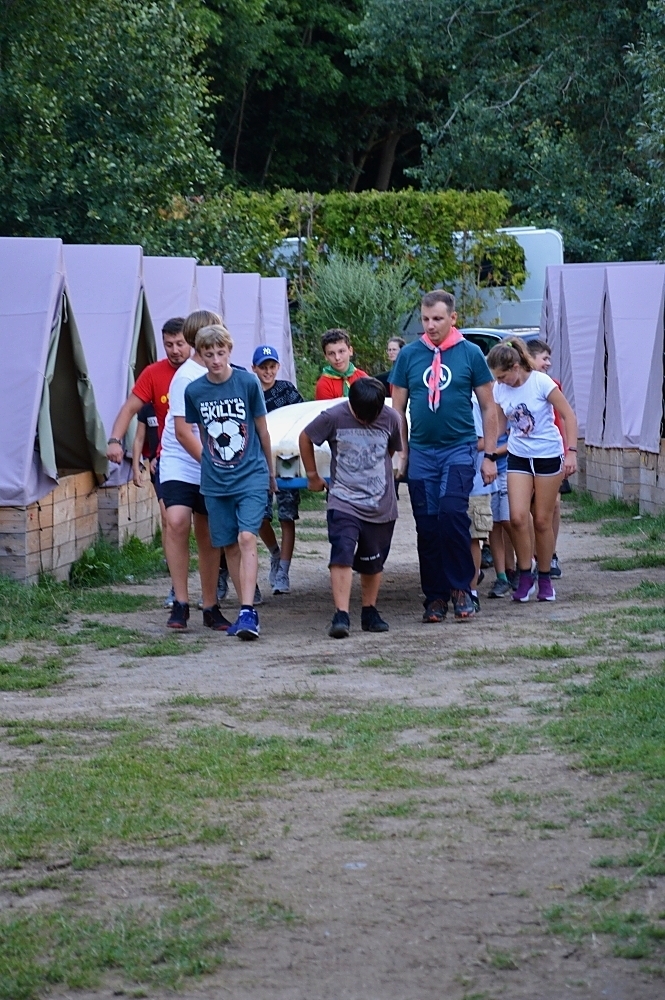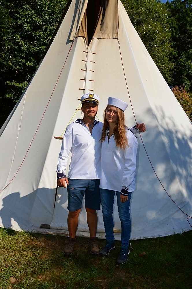 V prvních dnech jsme si tedy užili vody hodně. Buď té, na které jsme se plavili, nebo té co nám kapala na nos. Ale nic z toho nás neodradilo, protože nepsaným jedenáctým bodem skautského zákona je: “Skaut je nepromokavý“.. Počasí bylo tedy velice divoké, jeden den vedoucím bouřka vyplavila tepee tak, že ohniště bylo plné vody. Naštěstí si s tímto velice dobře poradil Honza a dokázal zapálit oheň v naprosto mokrém prostředí.