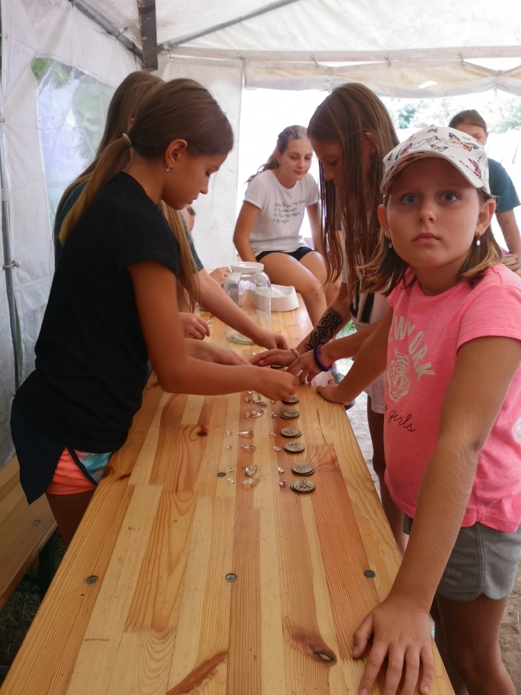 Děti dále sbíraly táborové mince za různé soutěže v celotáborové hře která se jmenovala: „Vodní olympijské hry“ a na konci tábořiště si mohly za tyto peníze vydražit různé předměty, od lékárničky přes sluneční brýle až po nealkoholický koktejl. Každý večer nás čekalo poděkování ostatním formou korálku. Děti měly prostor poděkovat ostatním za to, jak se celý den chovaly nebo pomáhaly.