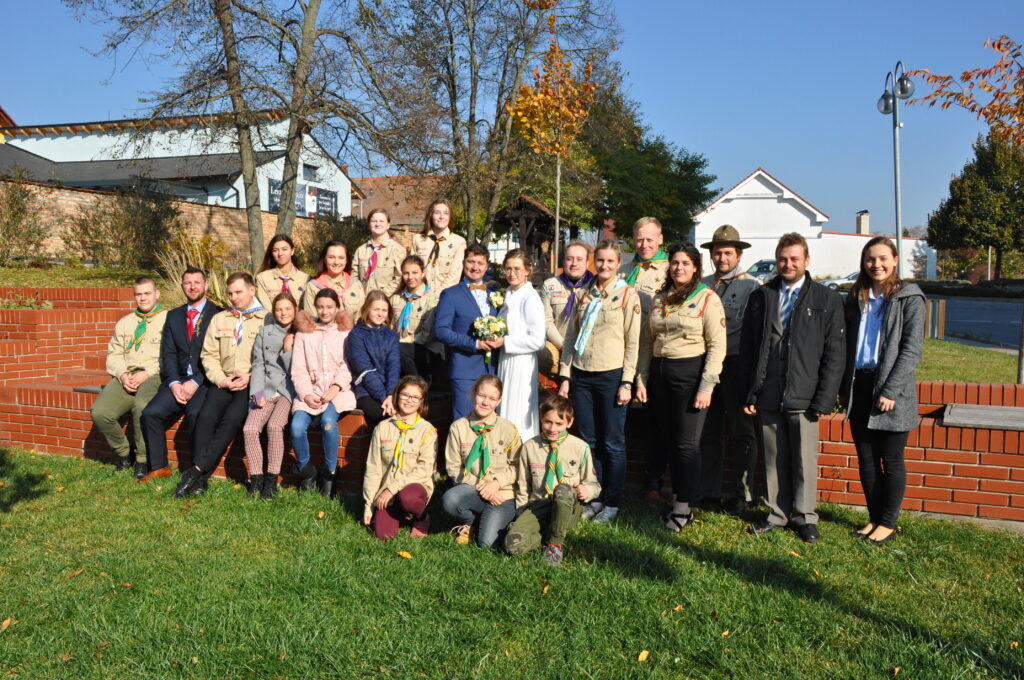 Tak jsme do toho praštili jak se říká. Nikdo tomu už asi moc nevěřil ale stalo se. Koncem října jsme si se Zdeničkou řekli svoje „ANO“ a protože jsme oba členové skautského oddílu z Čejkovic tak to byla skautská svatba. Marián – zástupce vedoucího oddílu bravurně zvládl funkci družby a ostatní skauti z našeho okolí u toho taky nechyběli. Moc děkujeme všem, kteří nás mile překvapili před kostelem. Zejména Přespolním děkujeme.