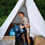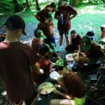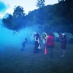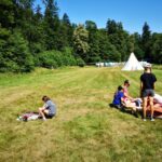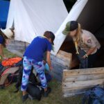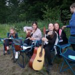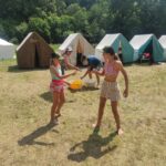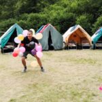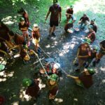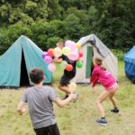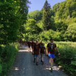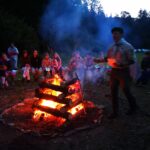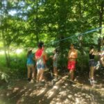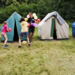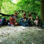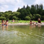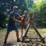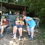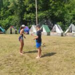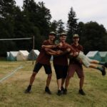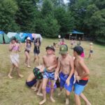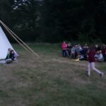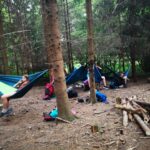 Na přespání mimo tábor, jsme vyrazili hned ráno po rozkaze, patřičně nabalení vším co by se nám mohlo hodit. Naše první kroky nás vedly do rekreačního areálu Hadinka, kde jsme se v parném a horkém dni vykoupali v přírodním koupališti, stihli jsme oběd a taky zmoknout. Cestou zpět jsme se utábořili v kopcích, rozdělali oheň a po večeři, kterou jsme si samozřejmě na ohni připravili, jsme v noci ulehli do hamak, ve kterých jsme spokojeně usnuli.