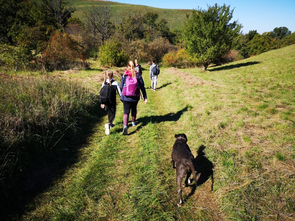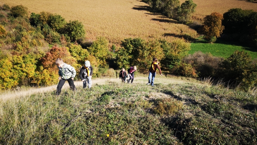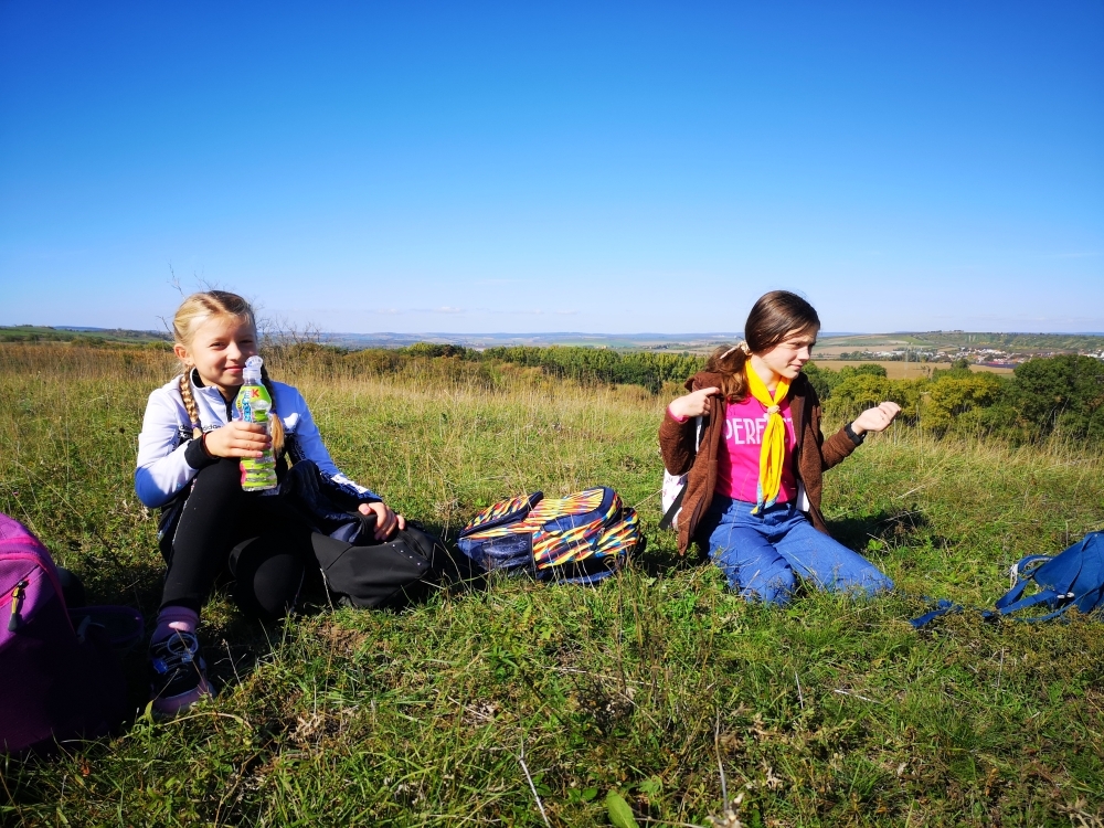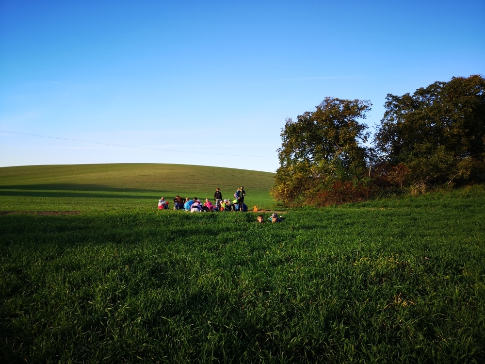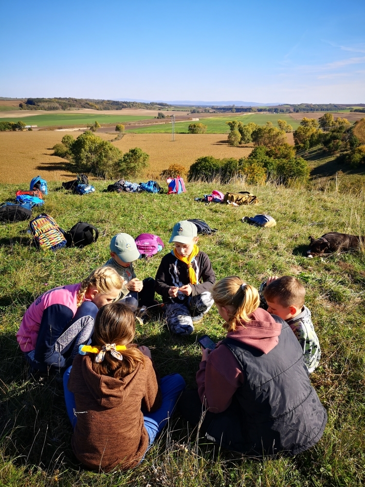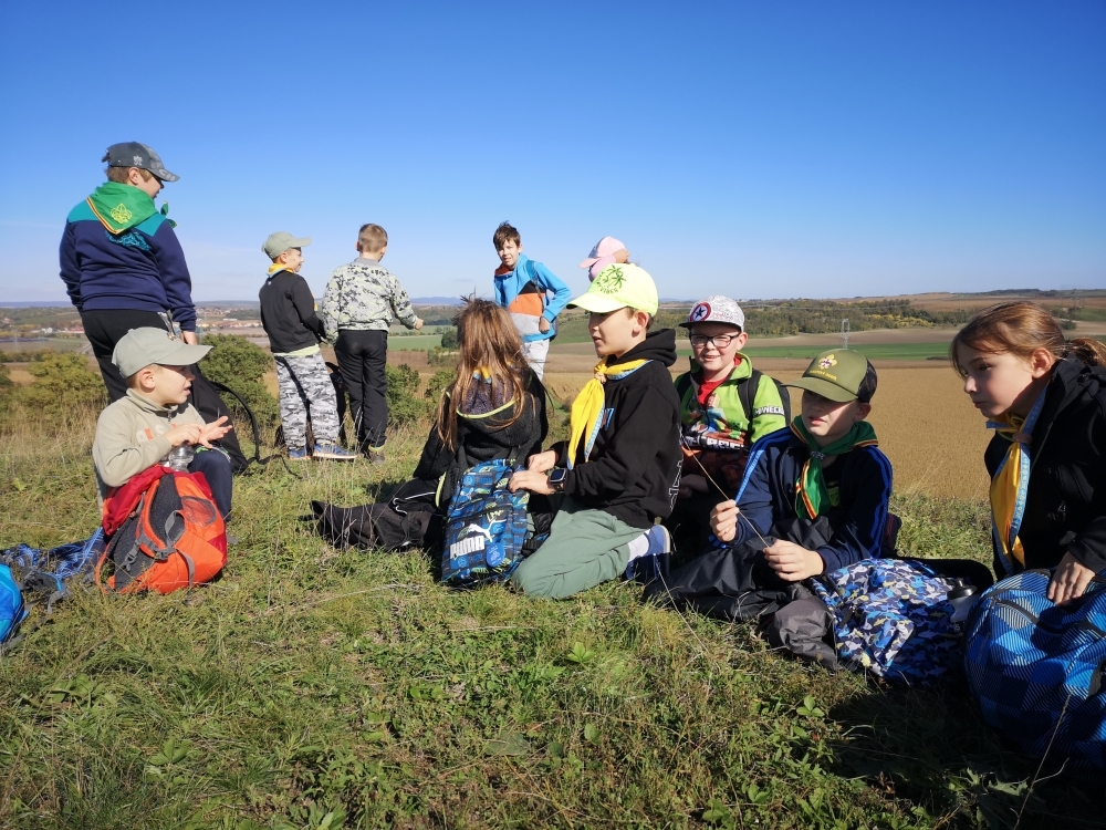 Cesta nám hezky utíkala a zvládli ji i ti nejmenší. Někteří z účastníků byly takto daleko pěšky za Čejkovicemi vůbec poprvé a koukali jaké krásy v okolí máme. Na místě jsme si povídali o tom, co je to přírodní památka, jaké druhy rostli a hmyzu tam můžeme najít a hlavně jak bychom měli pečovat o takové místa a o přírodu obecně. Malebného terénu jsme využili k adrenalinové hře, při které jsme měli za úkol uloupit nepřátelskou vlajku.