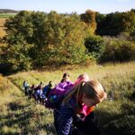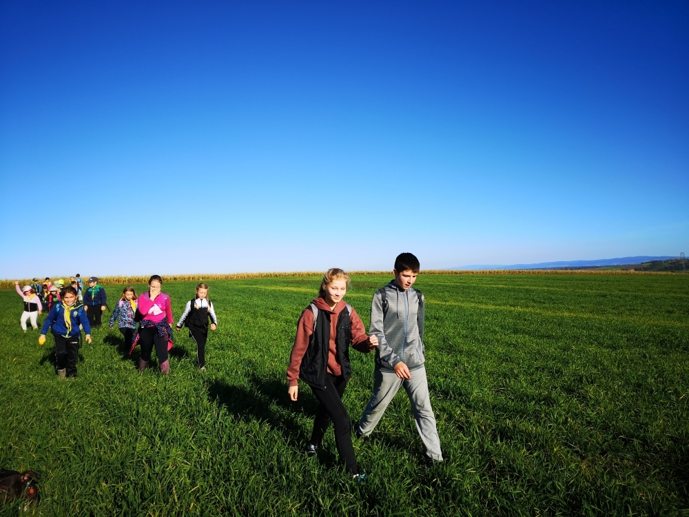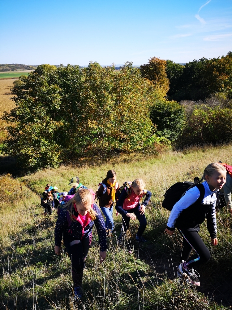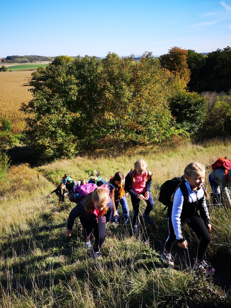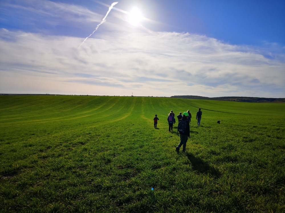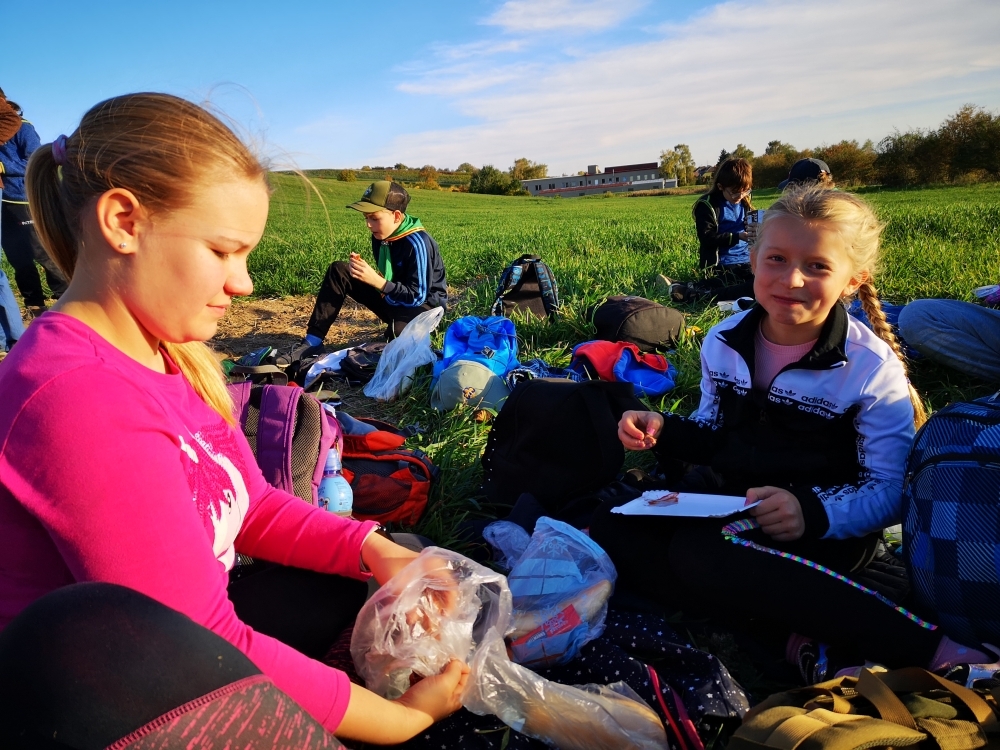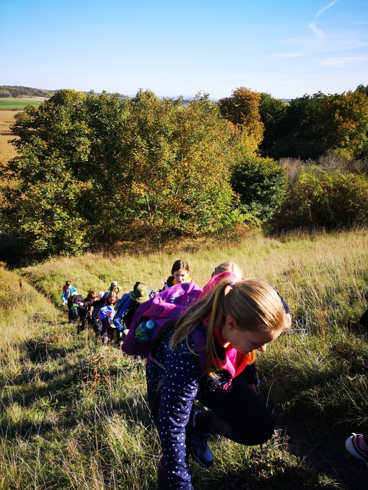 Cesta nám hezky utíkala a zvládli ji i ti nejmenší. Někteří z účastníků byly takto daleko pěšky za Čejkovicemi vůbec poprvé a koukali jaké krásy v okolí máme. Na místě jsme si povídali o tom, co je to přírodní památka, jaké druhy rostli a hmyzu tam můžeme najít a hlavně jak bychom měli pečovat o takové místa a o přírodu obecně. Malebného terénu jsme využili k adrenalinové hře, při které jsme měli za úkol uloupit nepřátelskou vlajku.