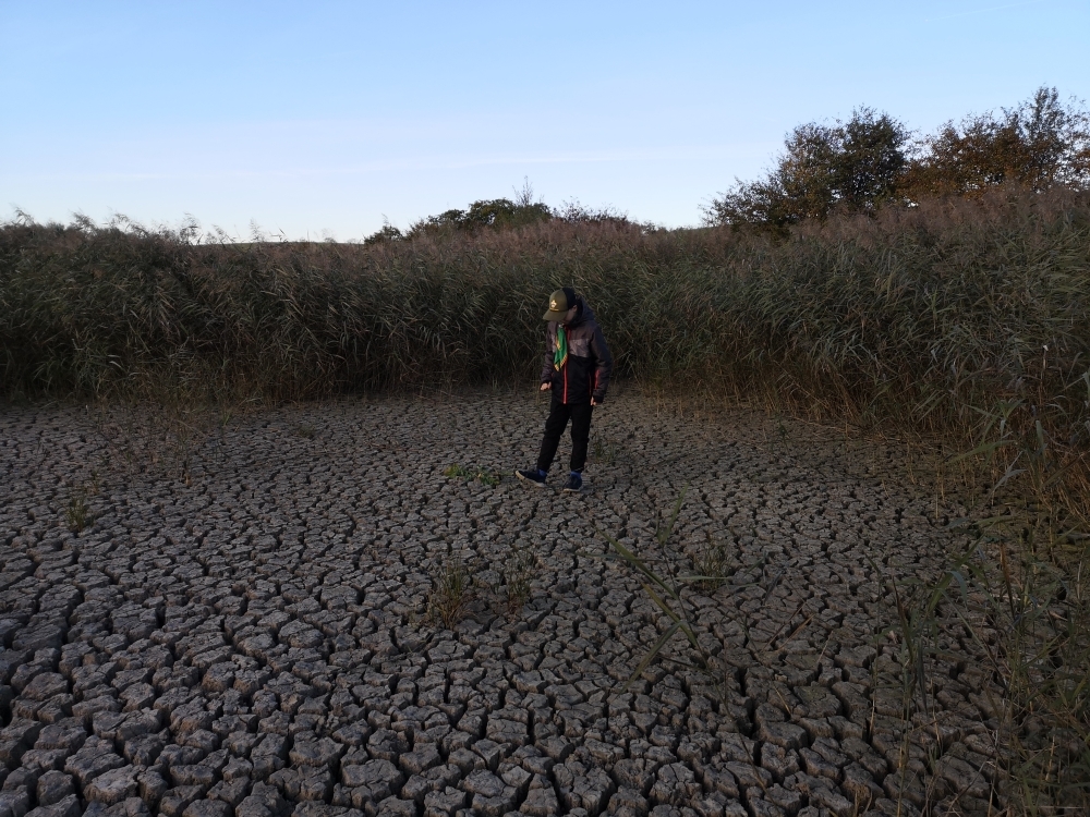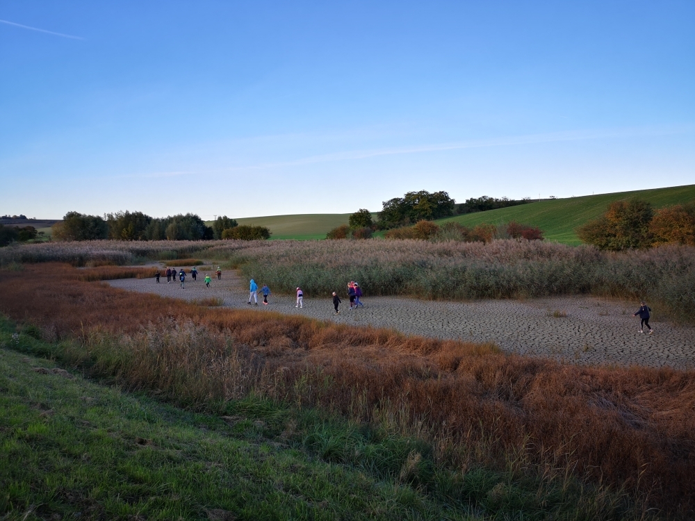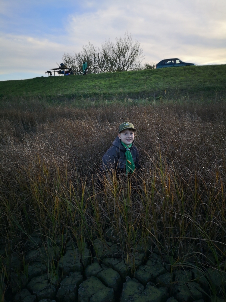 Cestou zpět jsme navštívili další místo nedaleko Čejkovic a to záchytnou nádrž v Krátinách, teď je vyschlá a zarostlá rákosím, které nám posloužilo jako parádní kulisa pro další adrenalinovou hru, kdy jsme se vžili do rolí partyzánů, kteří se plížili nepřátelským územím v džungli.