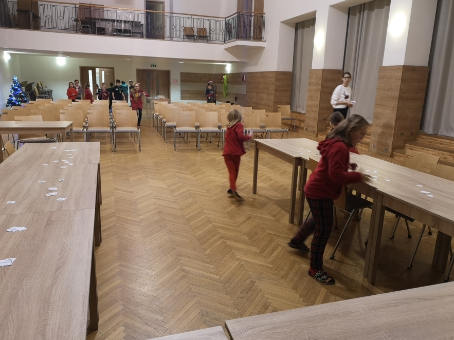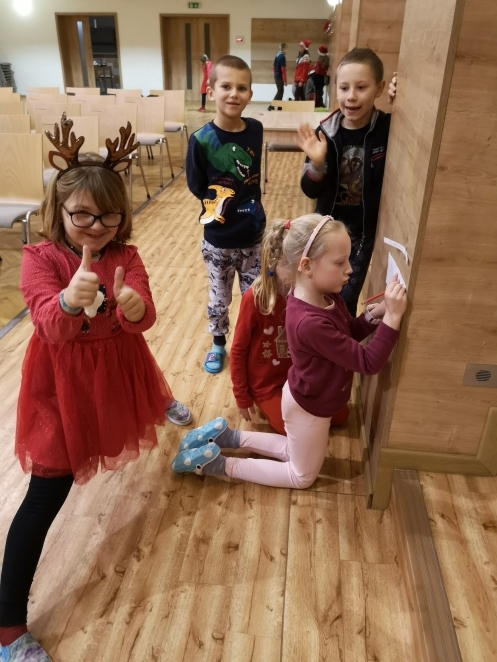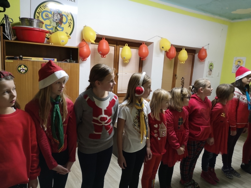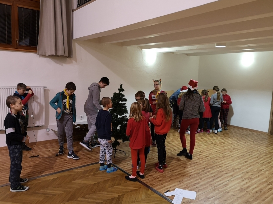 Týden před Vánoci, přesněji v pátek 16.12. o půl páté večer se děti začaly pomalu scházet na orlovnu. Všichni přišli ve vánočním a skvěle naladěni. Když už nikdo nechyběl, pozdravili jsme se pokřiky a tím i odstartovali náš společný večer.