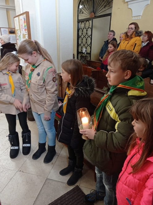 Dne 18.12.2022 jsme společně s našimi skauty, jak už je zvykem, při hrubé mši svaté přinesli do čejkovského kostela betlémské světlo. Zde bylo možné si jej odpálit a přinést do svých domovů.