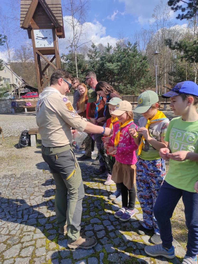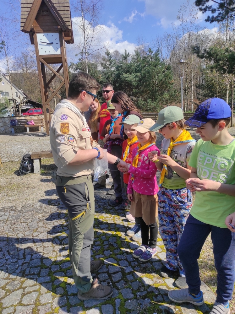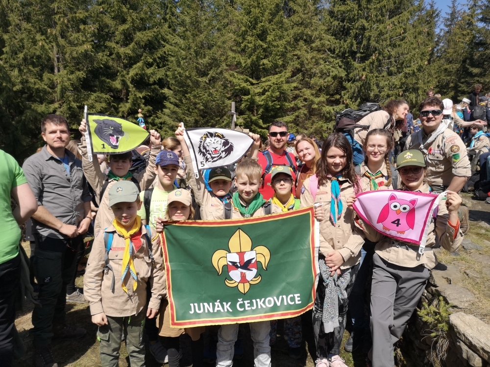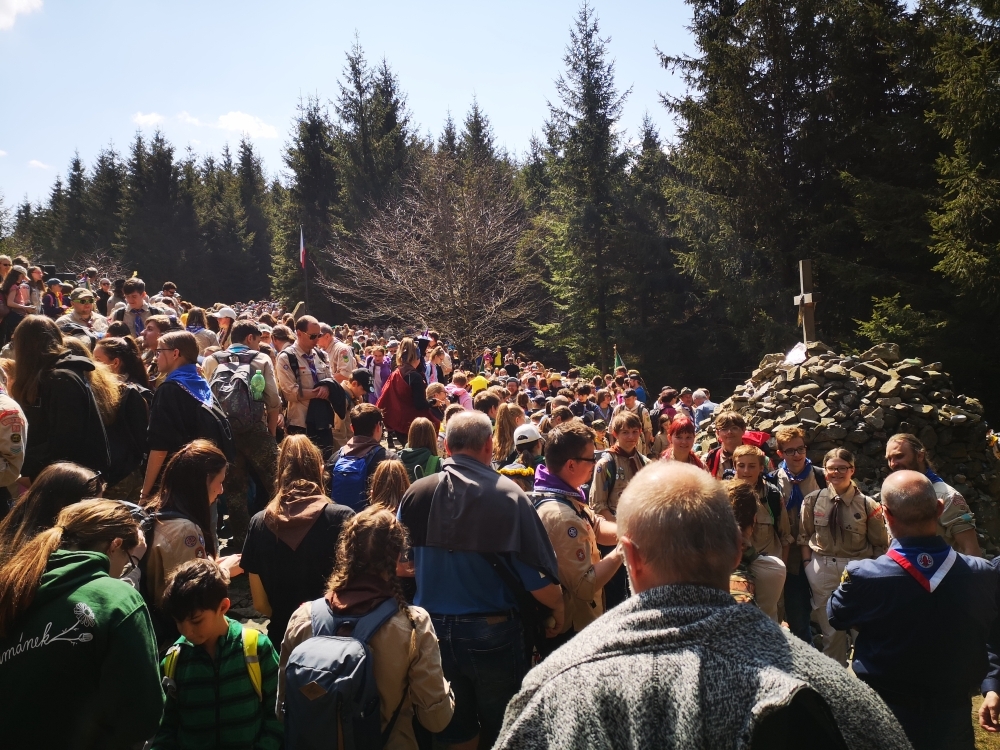Na samotném vrcholu bylo opravdu velké množství jiných skautů a tak jsme se museli pořádně hlídat, abychom se nesmíchali s jinou skupinou. Nicméně odměnou nám navždy bude pamětní nášivka, kterou si všichni zúčastnění můžeme na stejnokroj přišít a hrdě nosit. Nemalou odměnu nám poskytly nádherné výhledy Beskyd.